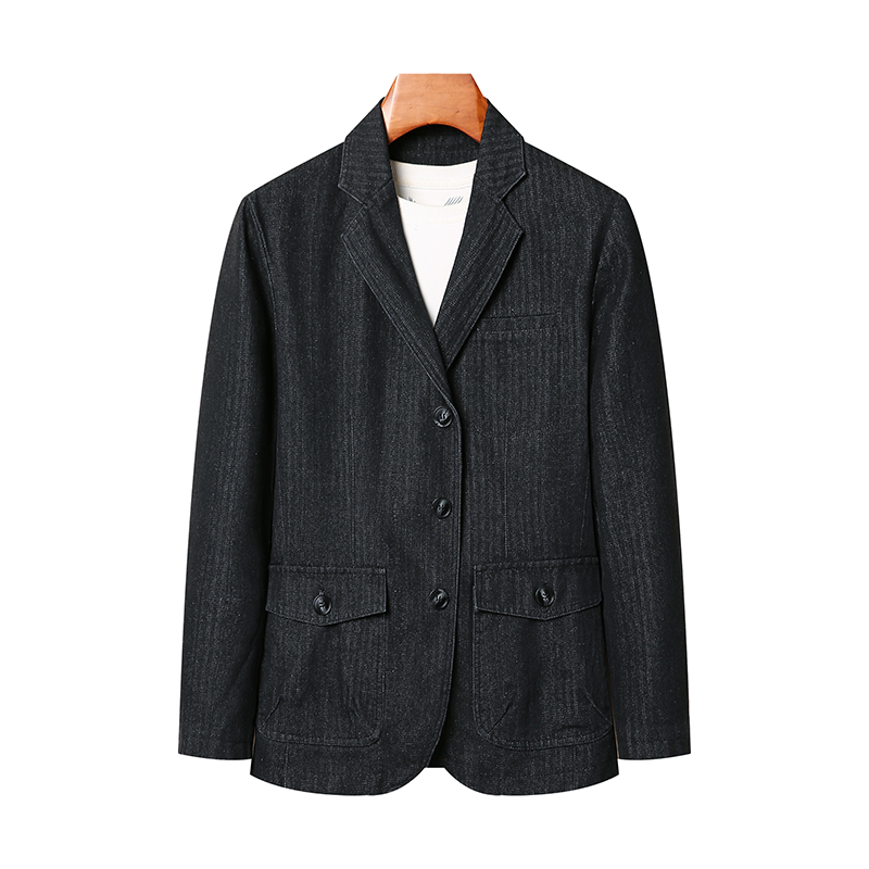 牛仔西服男春秋季商务休闲中老年爸爸装翻领上衣宽松大码便服单西