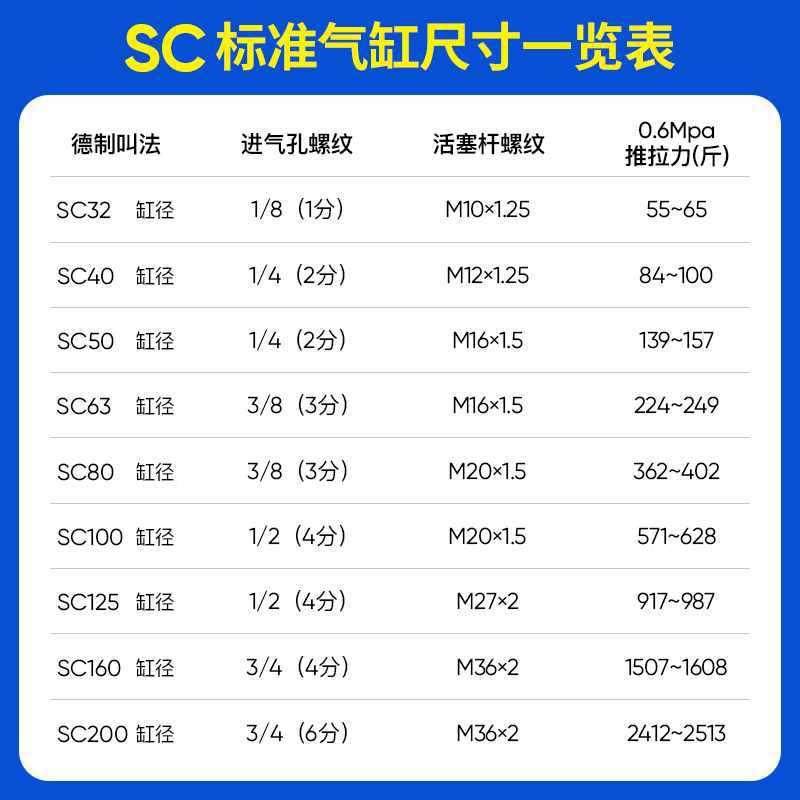 SC标准缸大推力可调行程小型气动2XX40X50X633X8气0X100120825X20