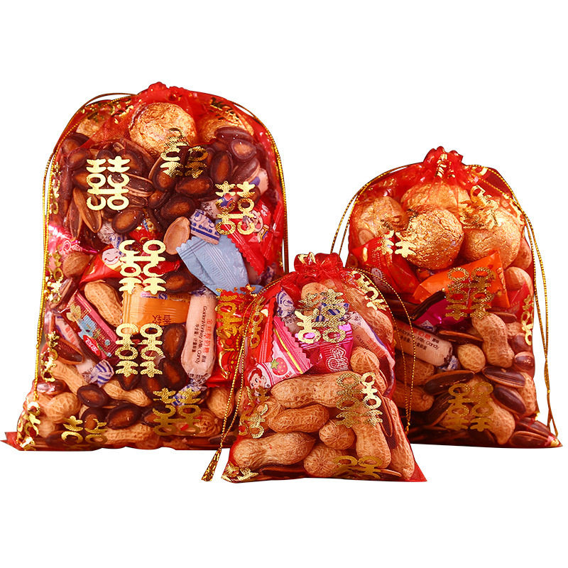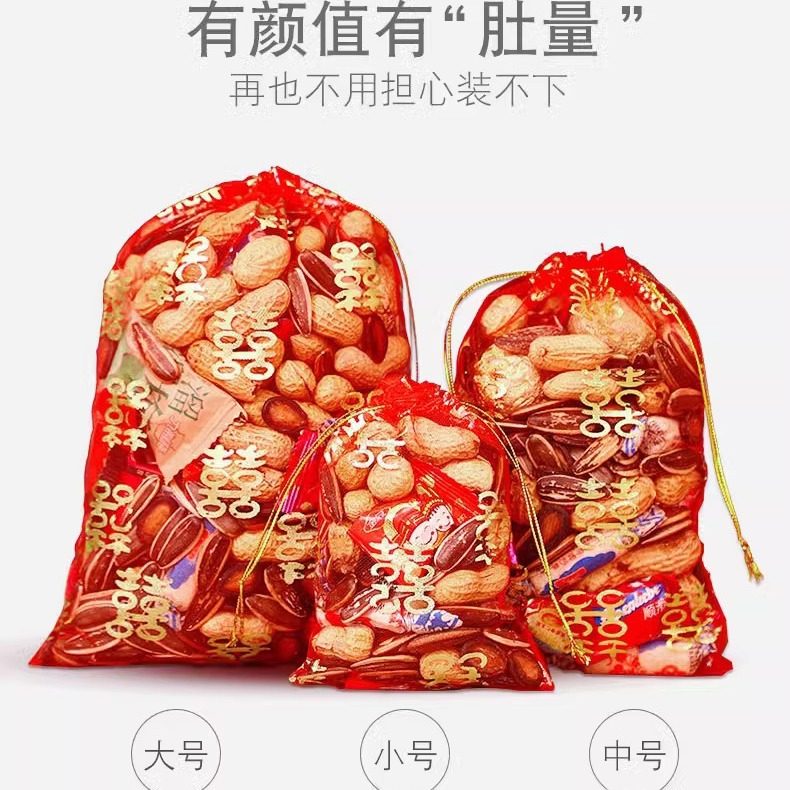 批发喜糖纱袋抽绳手提瓜子糖中国风回礼网纱喜糖袋子婚庆用品大全