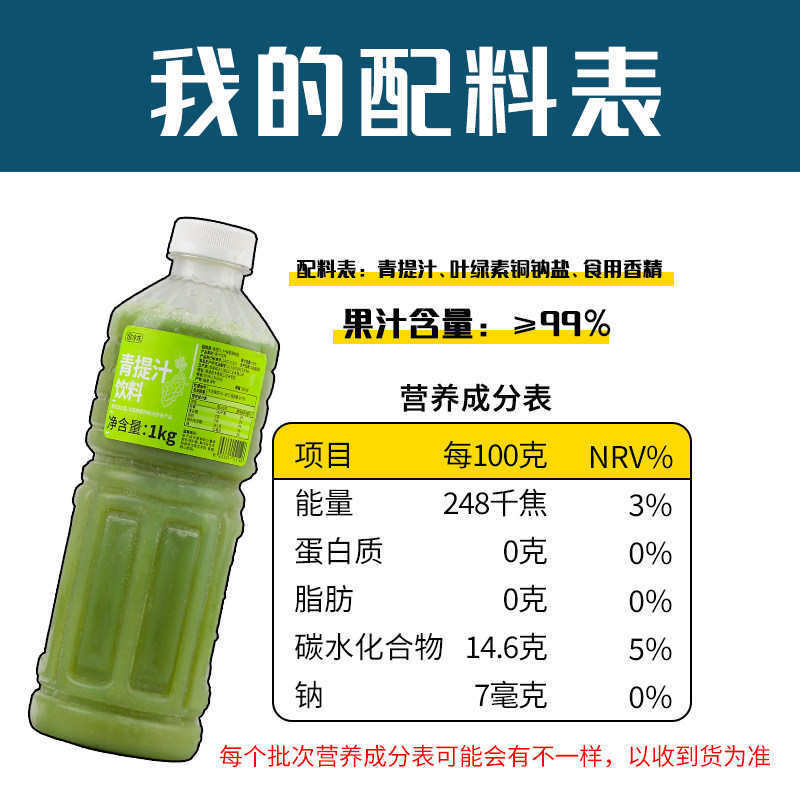 达川冷冻复合青提汁芝芝多肉阳光葡萄提子汁连锁奶茶店专用原料