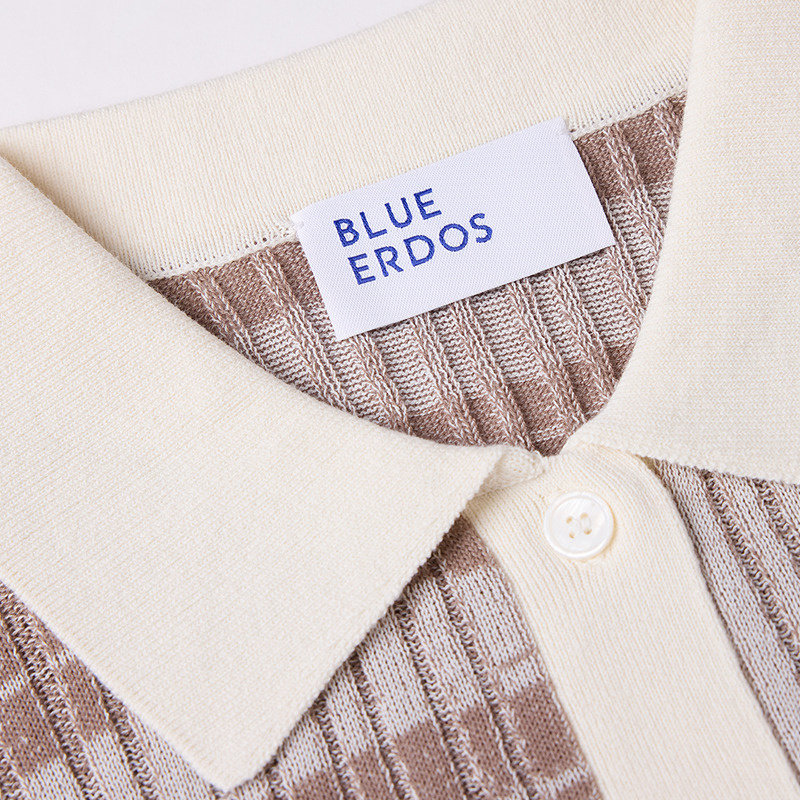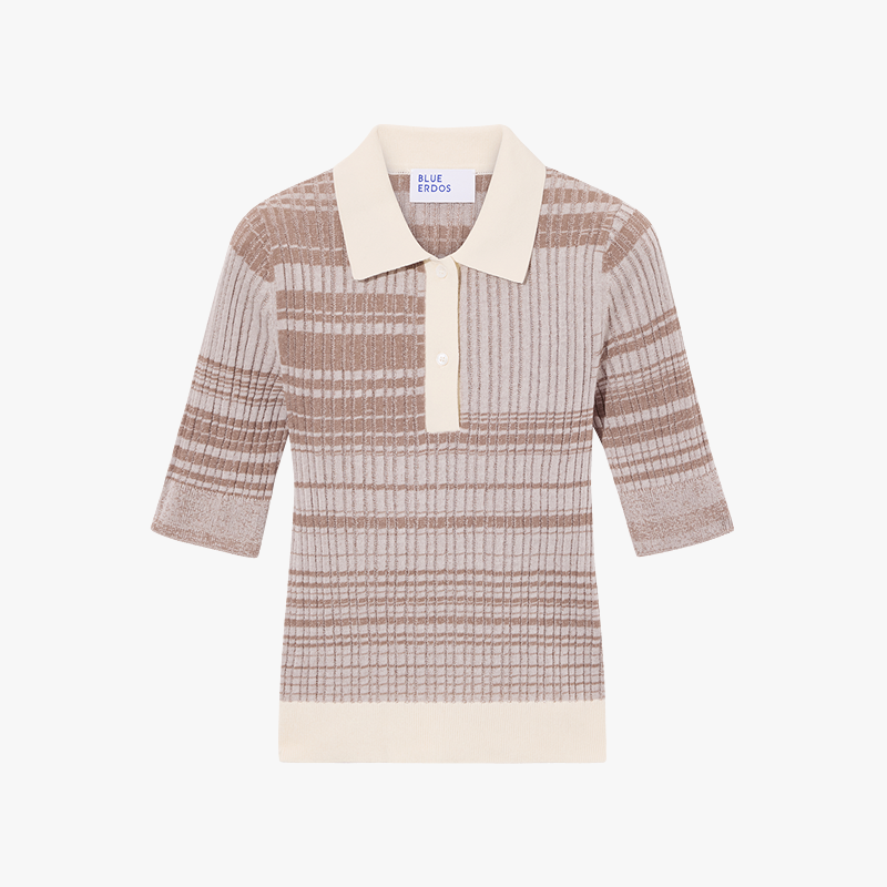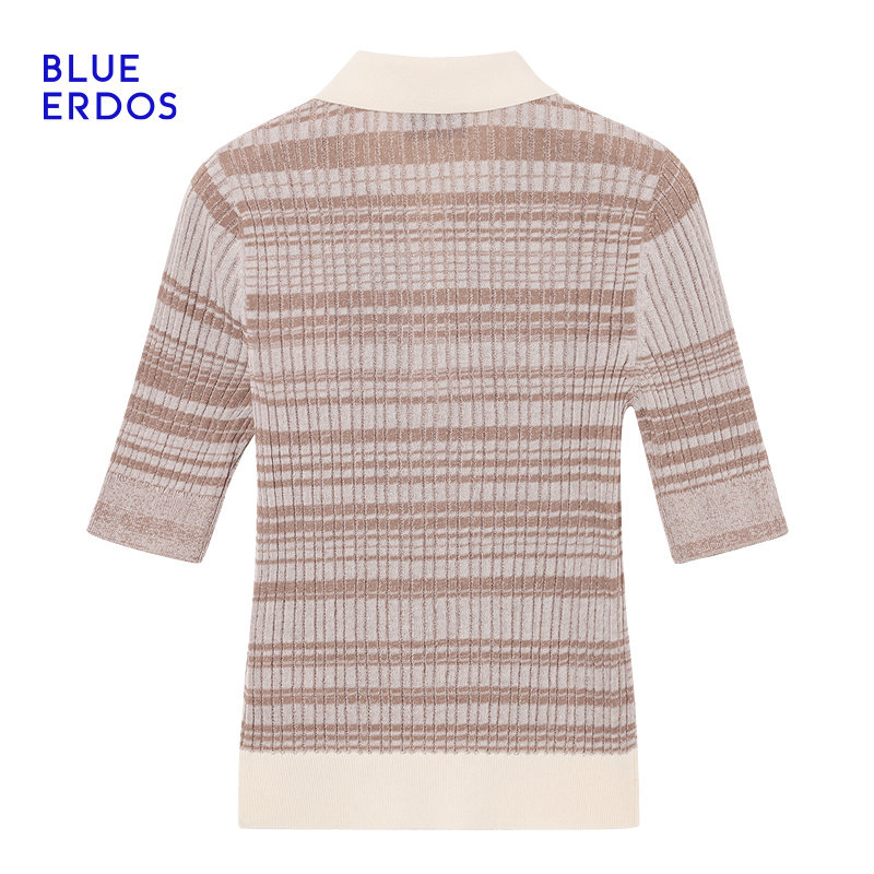 BLUE ERDOS 冬季浅春系条纹翻领修身弹力半袖针织套衫女