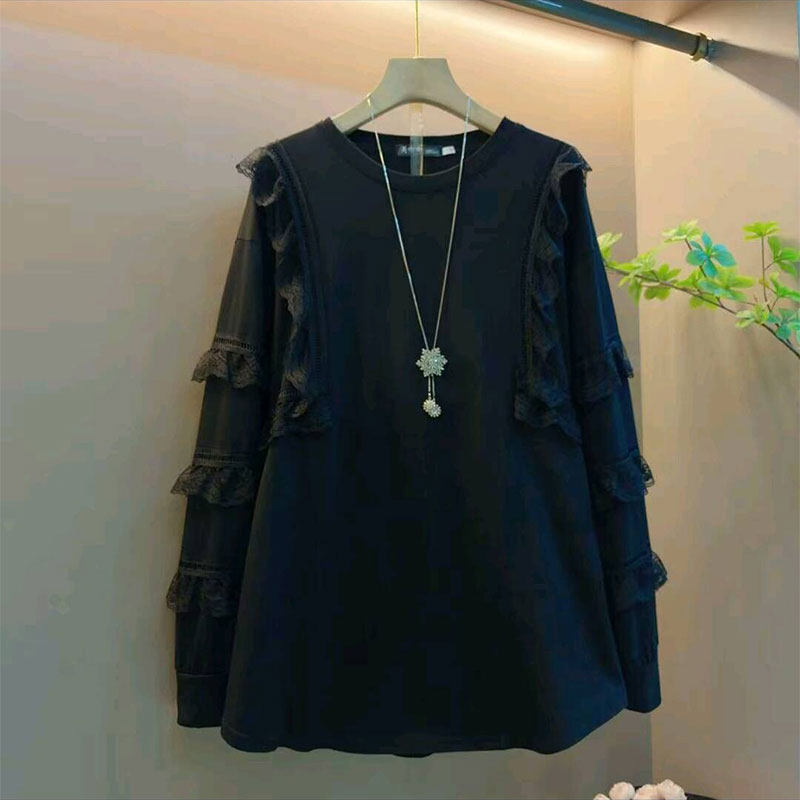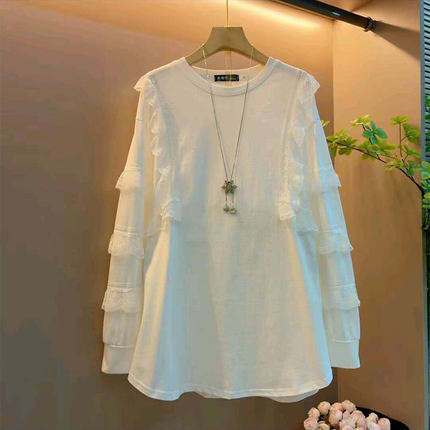 2026新款韩版时尚简约拼接蕾丝花边大衫大码女装胖mm气质显瘦上衣