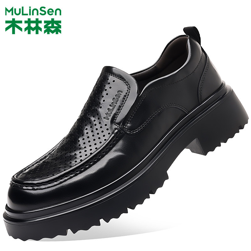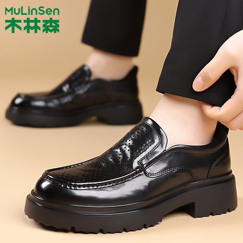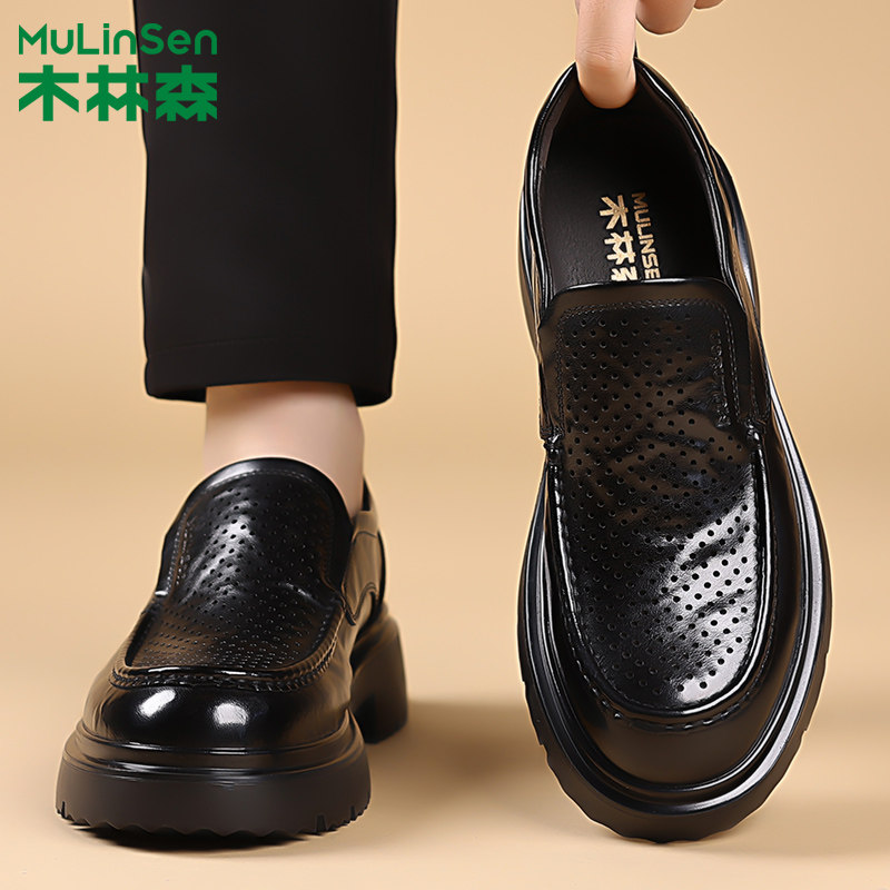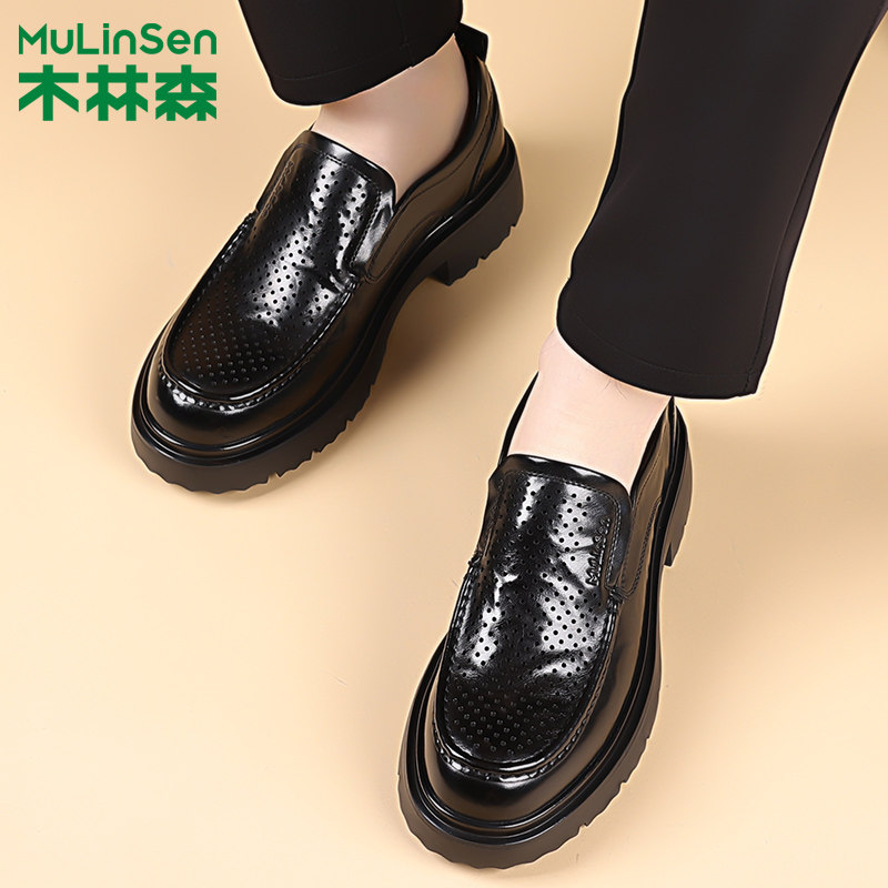 木林森男鞋2025夏季新款休闲男士休闲商务正装皮鞋英伦厚底德比鞋
