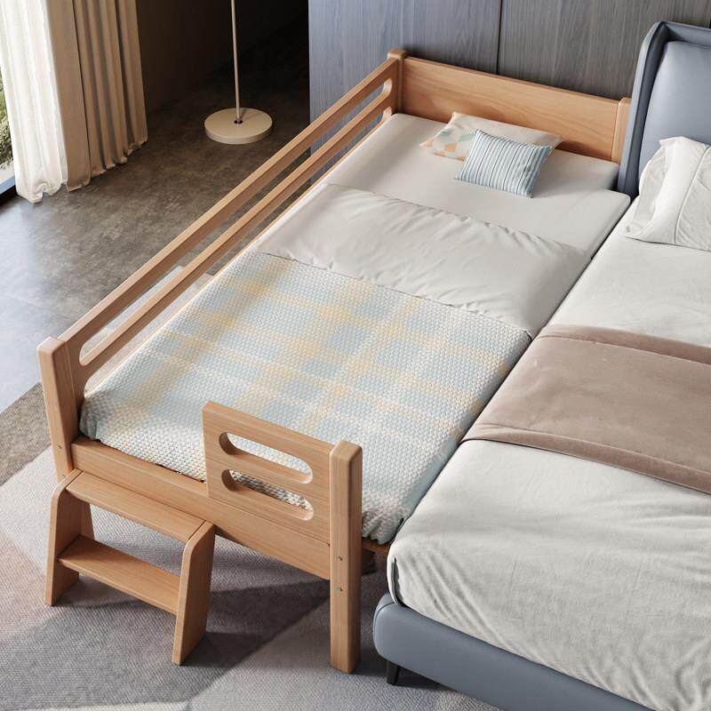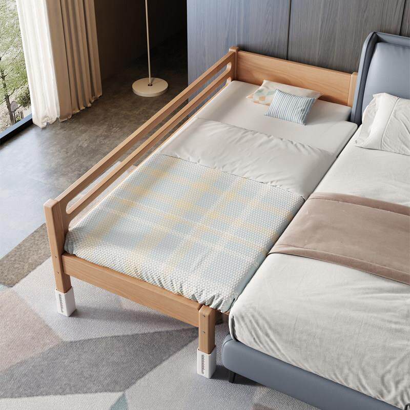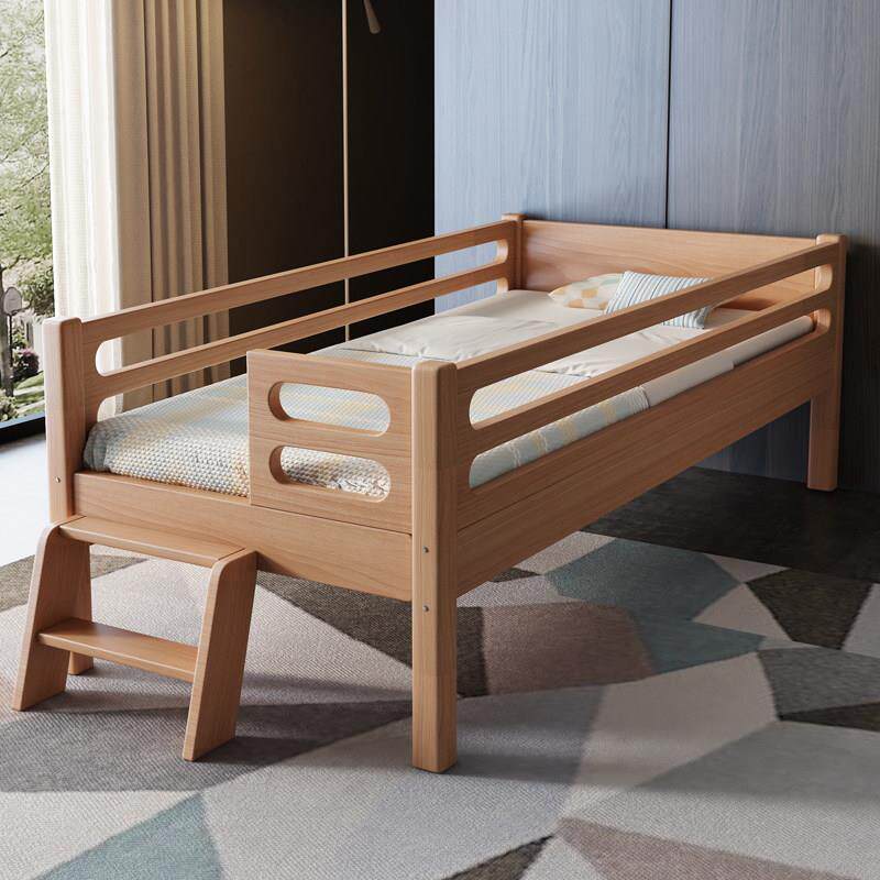 苏北鲁班定制榉木儿童床拼接大床带护栏加宽婴儿宝宝床边实木小床