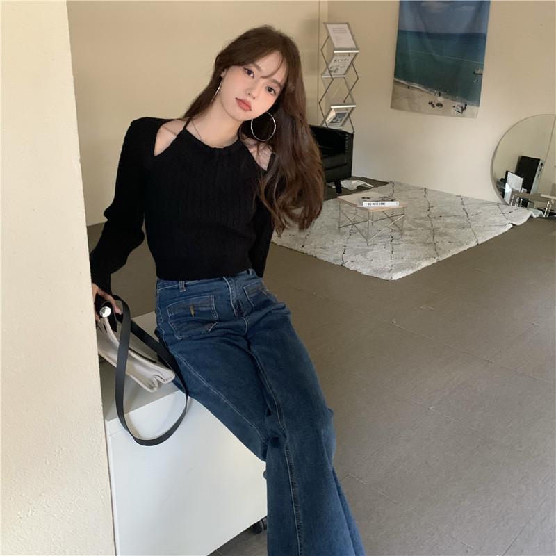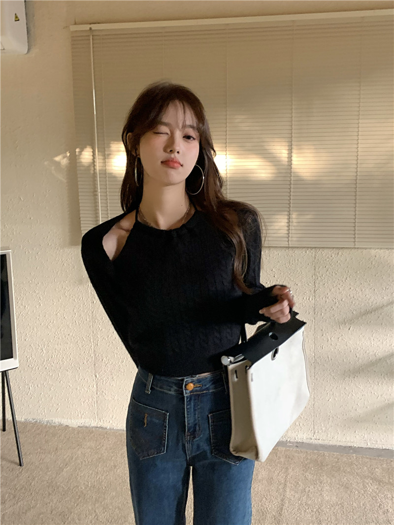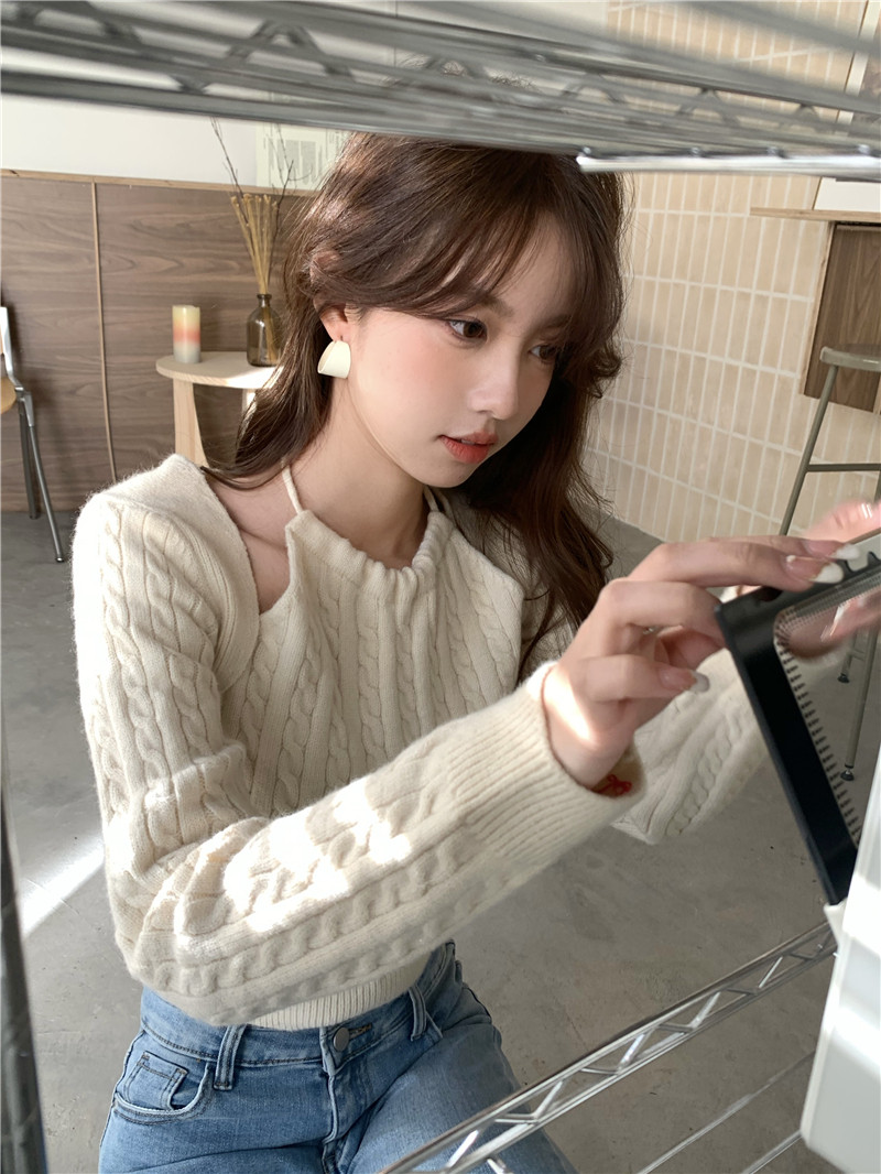 别致假两件麻花毛衣女小个子秋冬2022新款心机镂空针织衫短款上衣