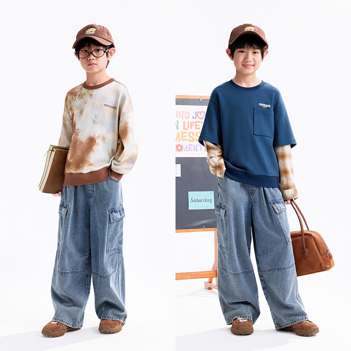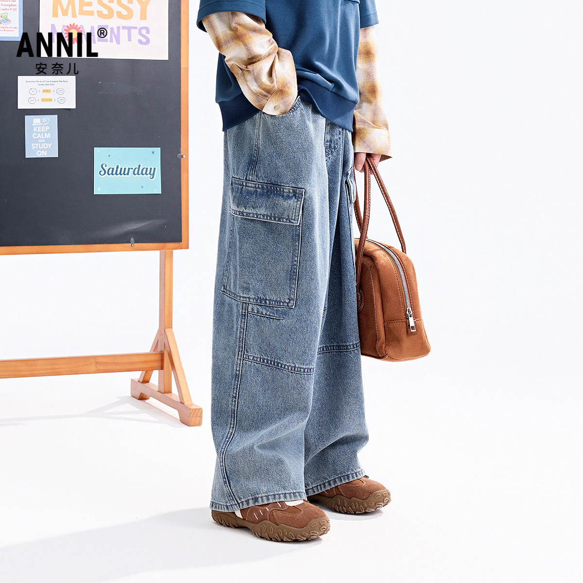 【商场同款】安奈儿童装男童牛仔裤秋新款弹力工装裤AB536111