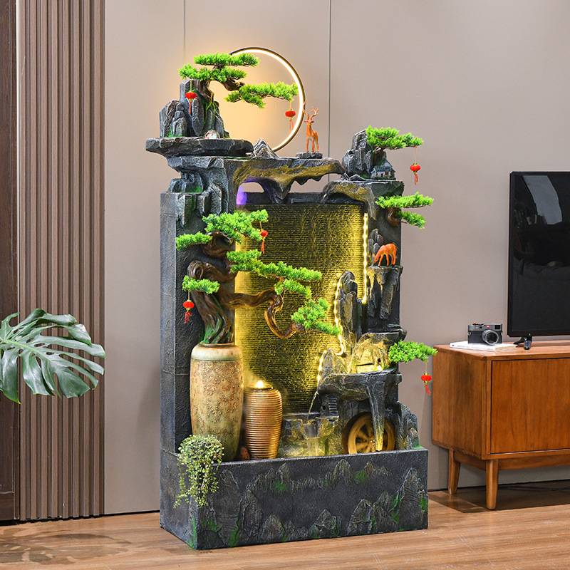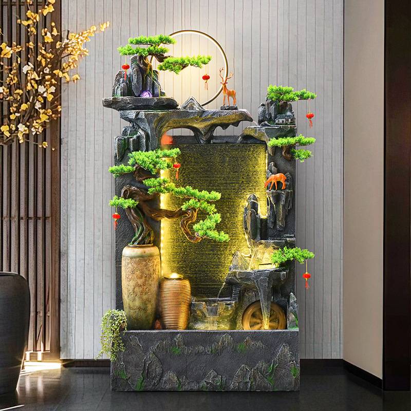 大型假山流水喷泉造景鱼池落地摆件酒店办公室风水轮客厅玄关招财