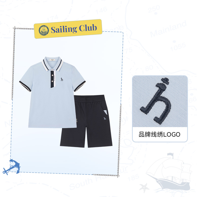hazzys哈吉斯童装男童套装2025夏新丝光珠地透气短袖短裤2件套