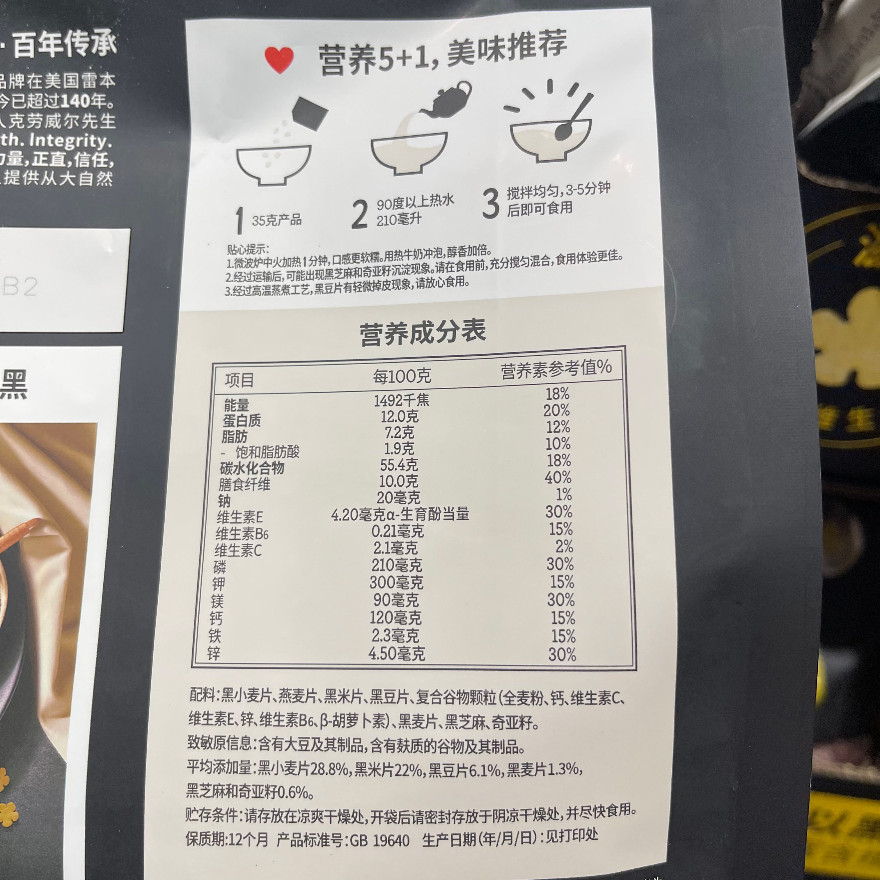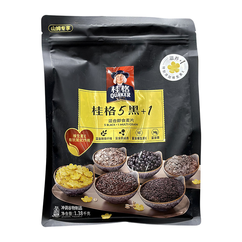 山姆代购QUAKER桂格五黑混合麦片1380g早餐代餐谷物燕麦冲饮即食