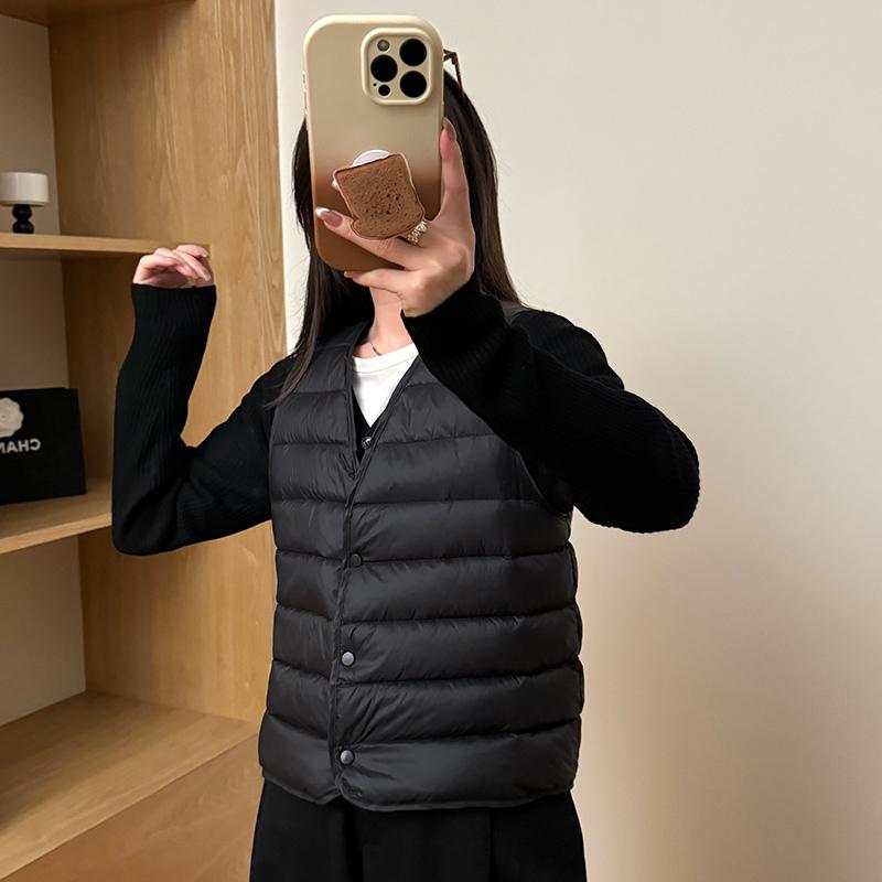 女轻薄90%白鹅绒羽绒马甲V领2025新款秋冬季保暖百搭内胆背心内穿