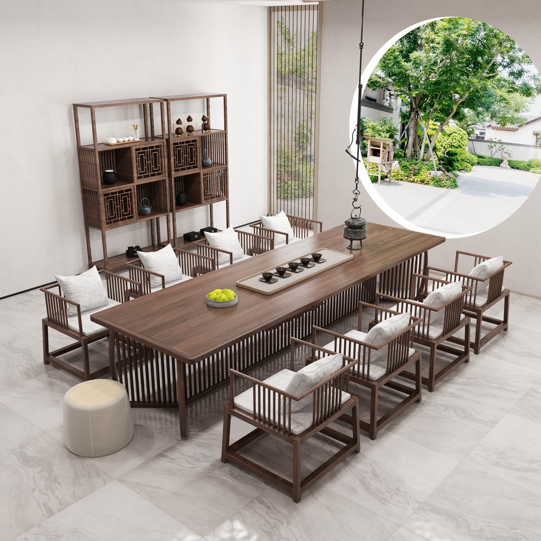 新中式茶桌椅组合禅意实木功夫茶台办公室茶室泡茶桌会议桌椅家俱