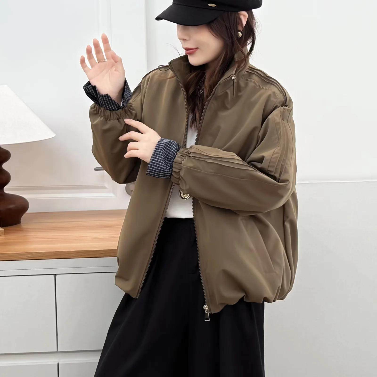 大码女装2025胖mm冬装中年夹棉外套小棉袄女袖口拼接格子立领棉衣