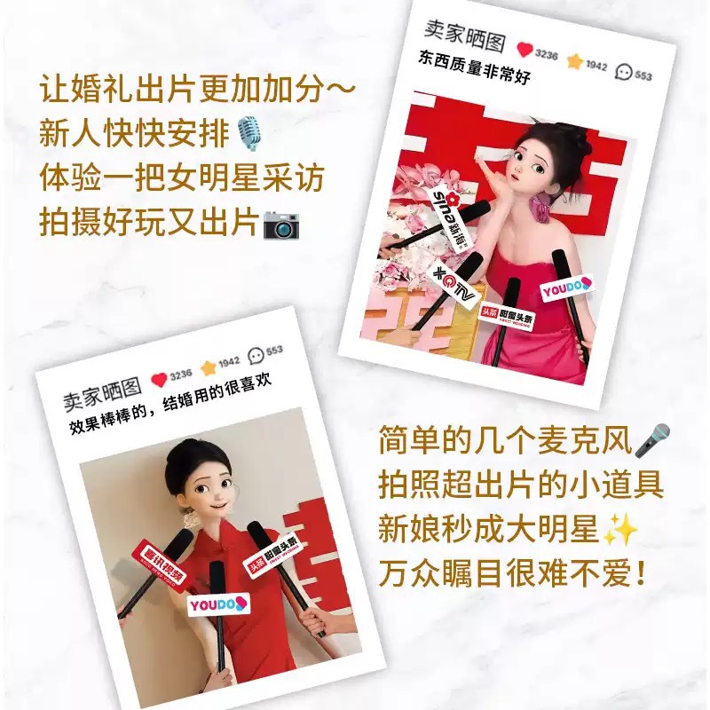 接亲拍照小道具结婚仿真采访话筒创意婚礼麦克风堵门游戏用品大全