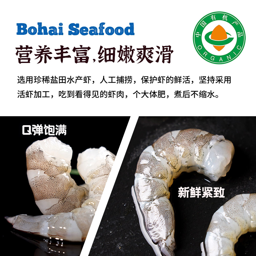 无抗有机虾仁 无虾线锁鲜白对虾大速冻虾仁鲜冻无冰生虾熟虾