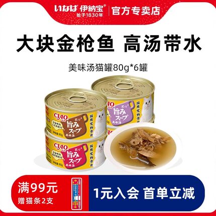 伊纳宝猫咪罐头美味汤罐大块金枪鱼湿粮成幼猫零食6罐补水猫罐头
