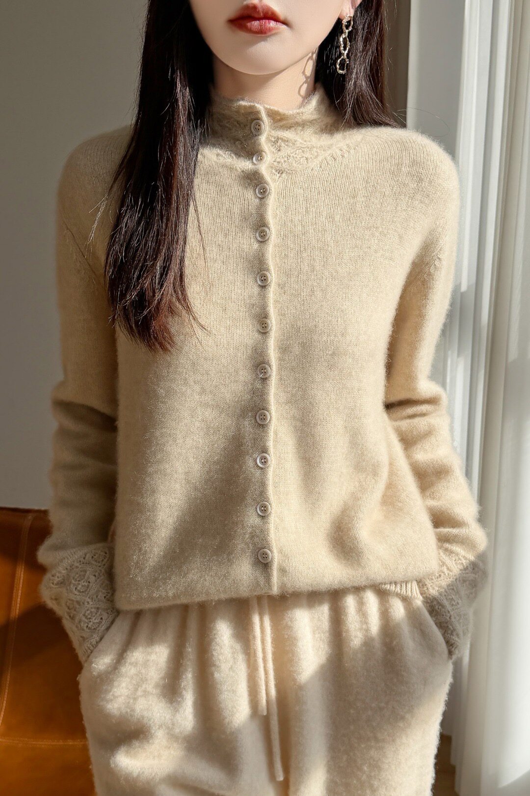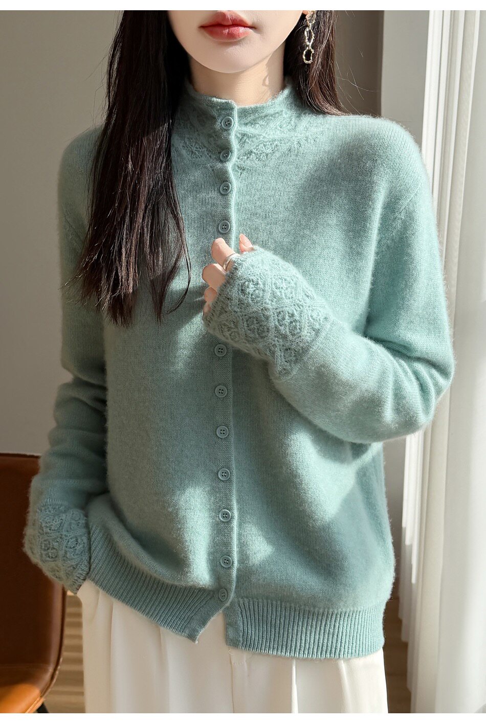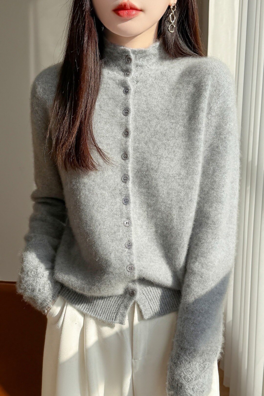 温柔风纯羊毛单排扣纯色针织开衫女2025秋冬季新款宽松百搭毛衣