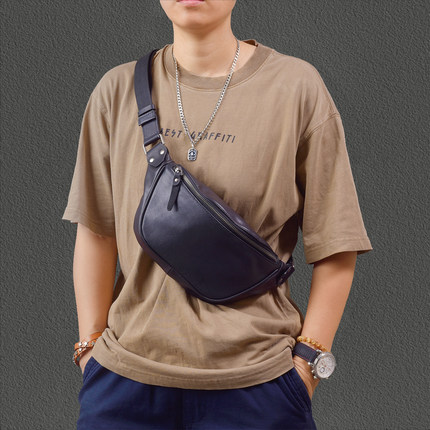 二十四街 多功能轻便软牛皮男士胸包质感真皮腰包斜挎休闲小背包