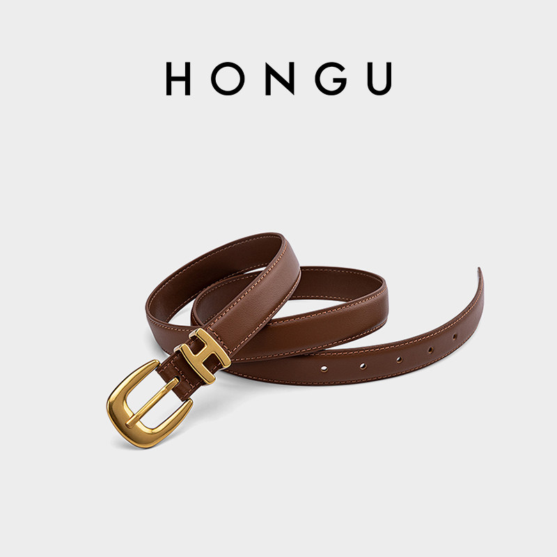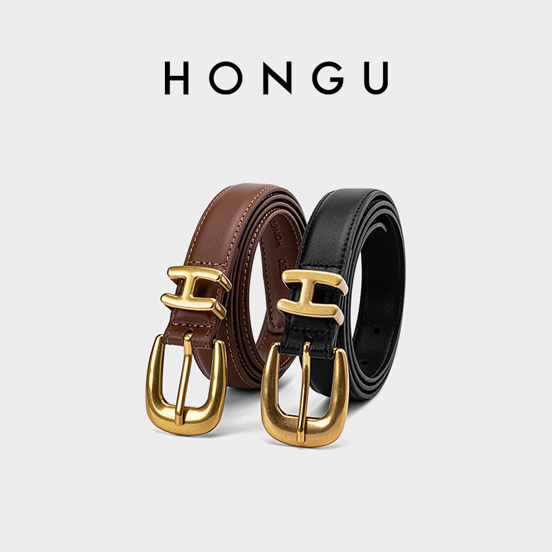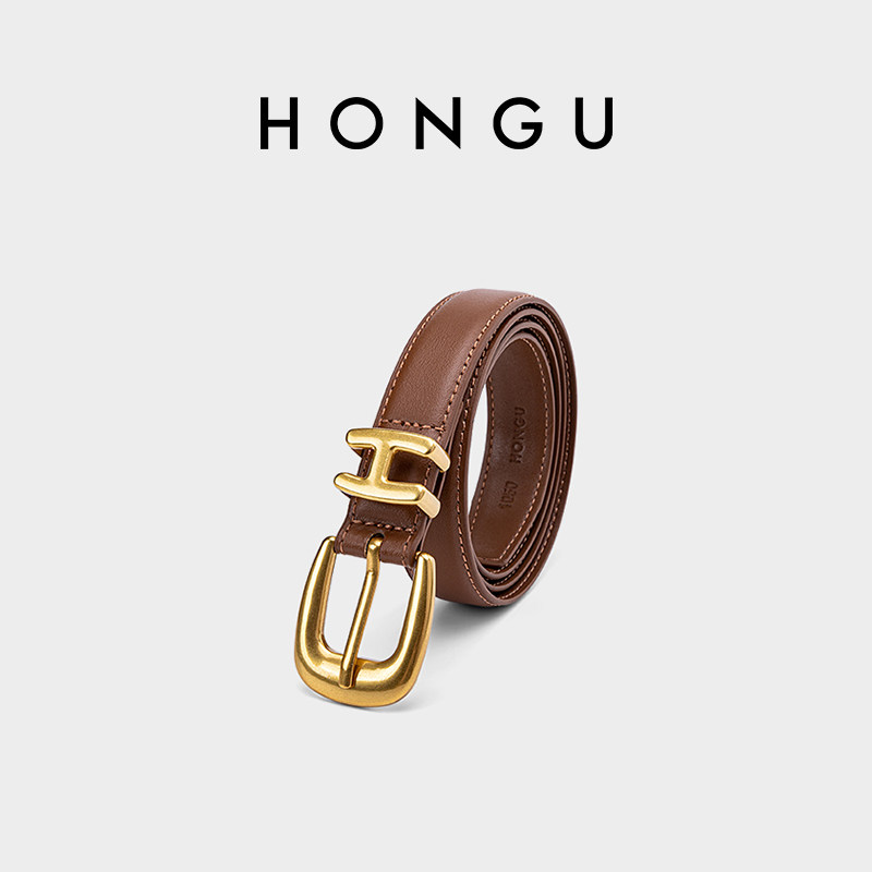 红谷女士真皮皮带休闲针扣扣头百搭腰带女装饰裤带时尚H2665955