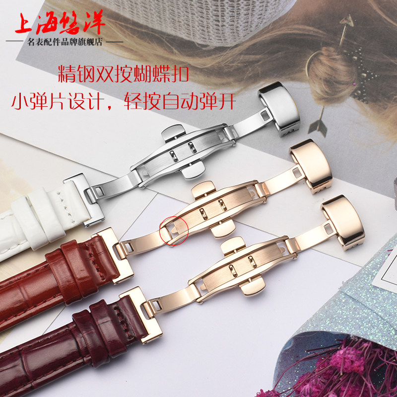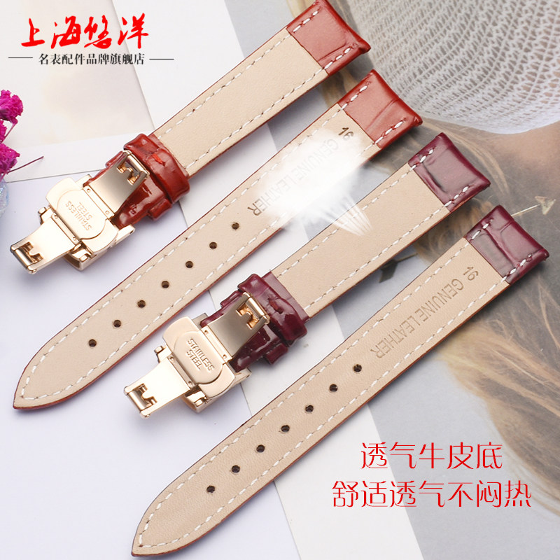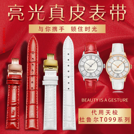 适配1853天梭T099手表带杜鲁尔系列T099207A女亮红色真皮表链16mm