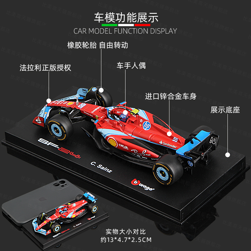 比美高1:43迈阿密F1法拉利SF24方程式赛车模型仿真合金车模伊莫拉