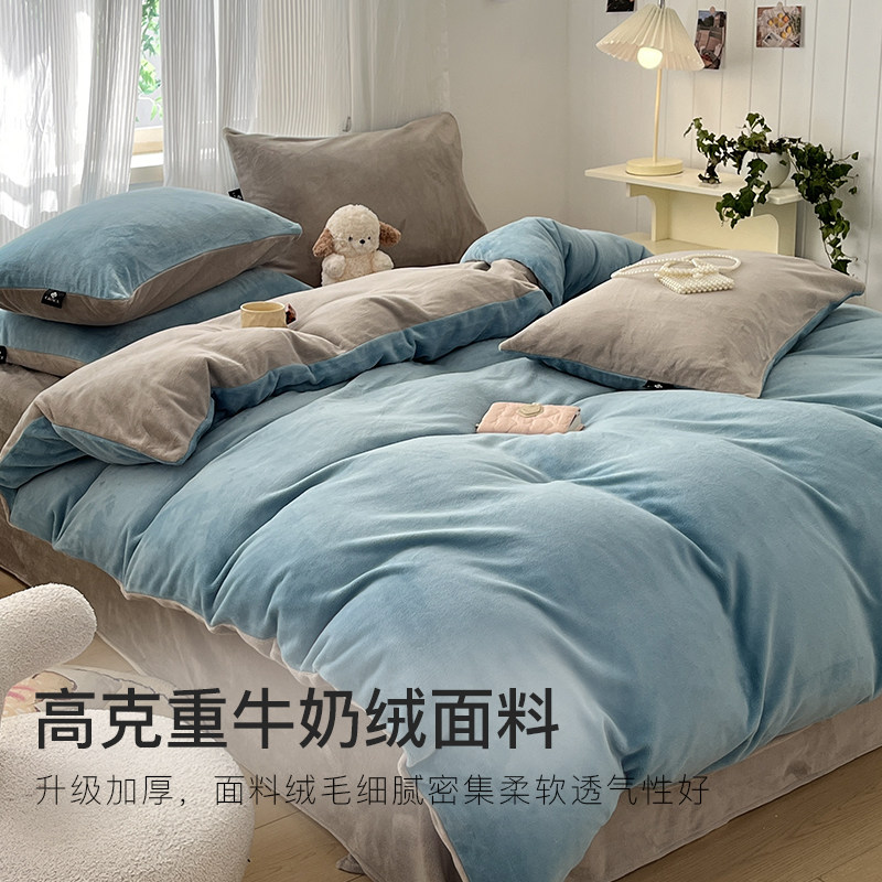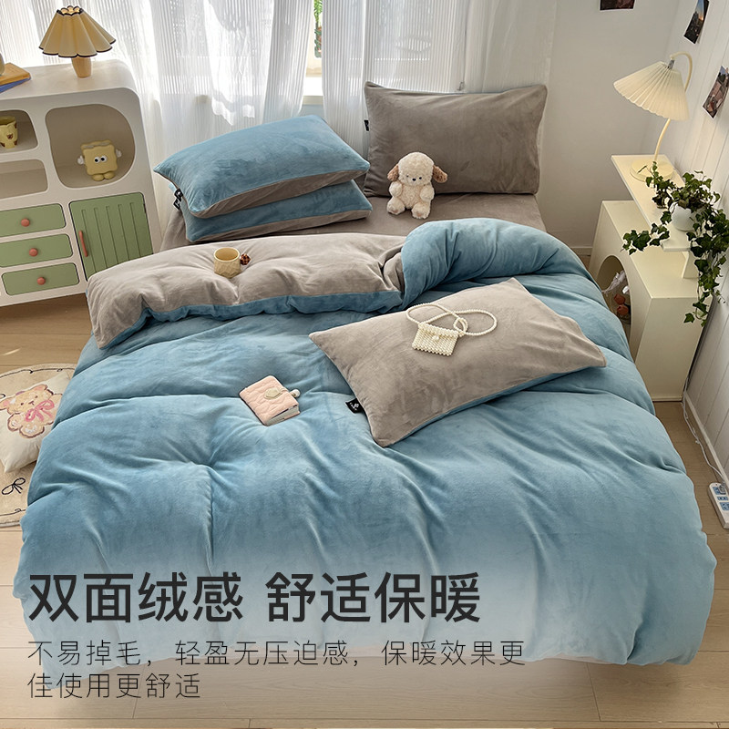 洁丽雅牛奶绒四件套加厚珊瑚绒被套床单床笠家用宿舍保暖床品套件