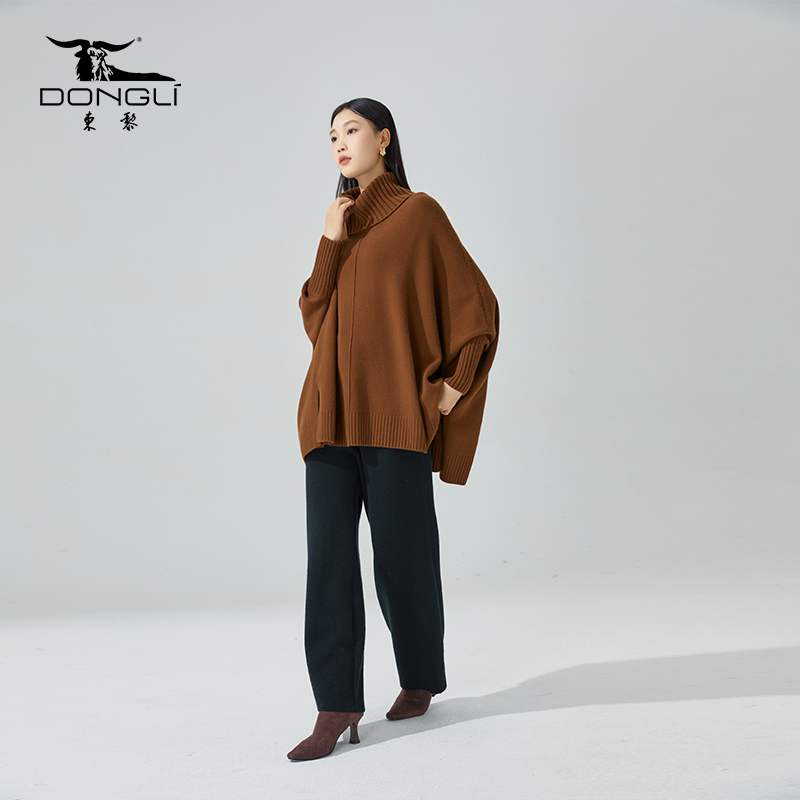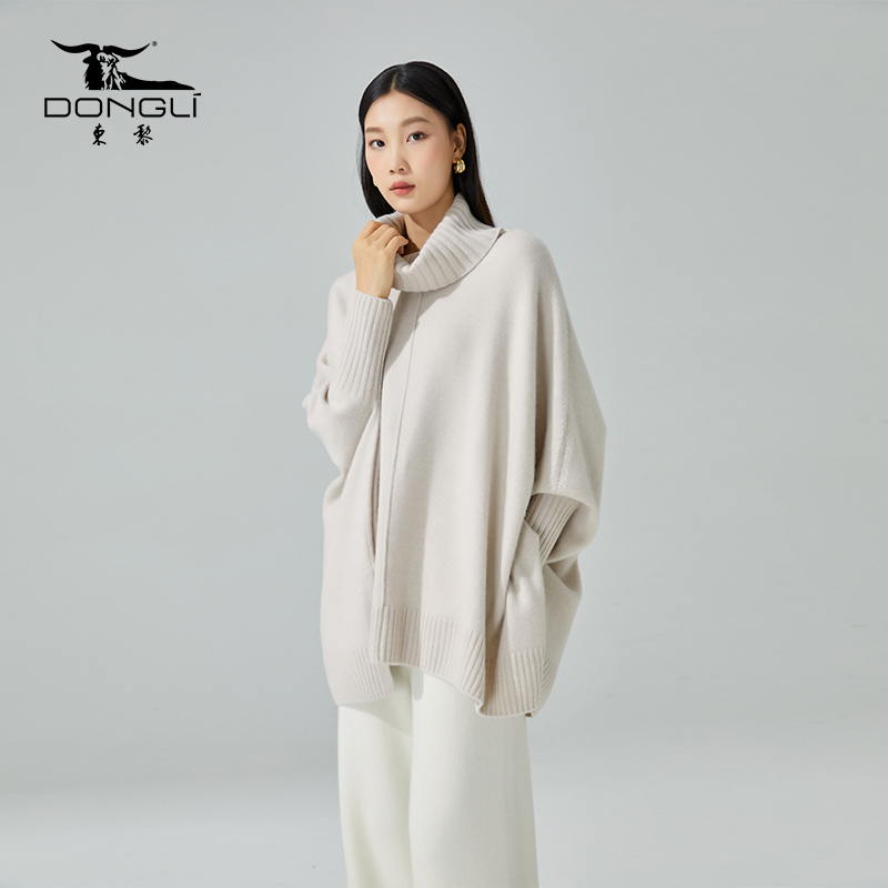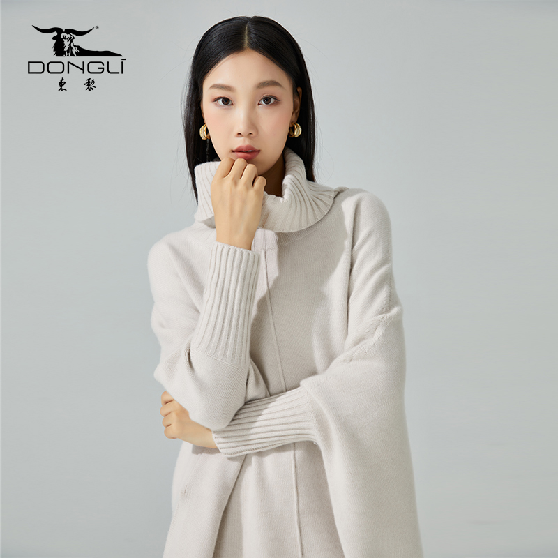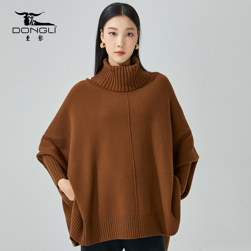 东黎小山羊绒 秋冬女士高领加厚羊绒衫披肩廓形优雅针织斗篷3421
