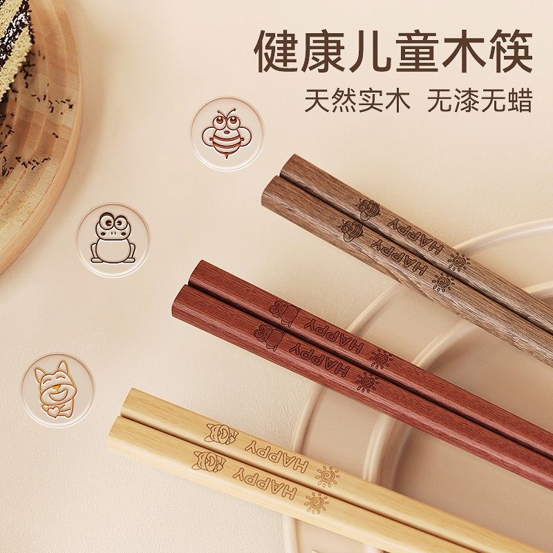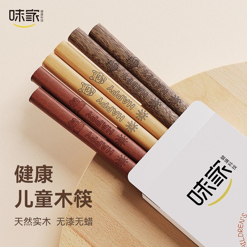 味家儿童筷子抗菌防霉幼儿园宝宝筷6-12岁专用木质筷高档家用木筷