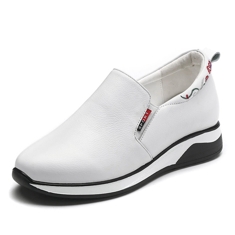 单鞋妈妈鞋真皮软底防滑舒适乐福鞋女春秋款运动休闲鞋内增高皮鞋