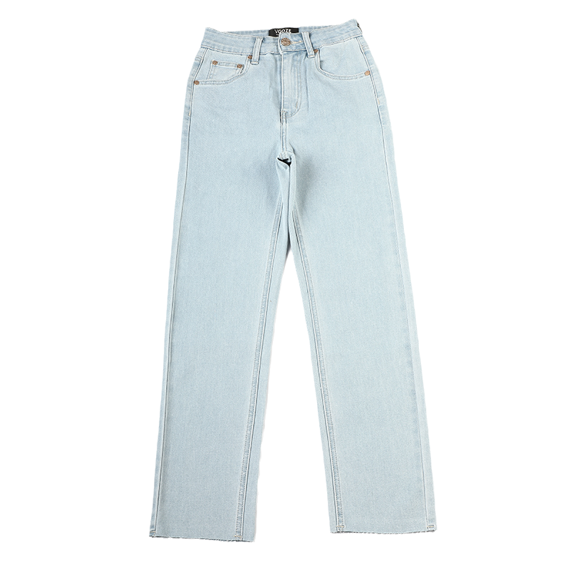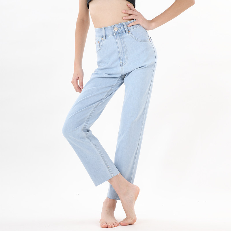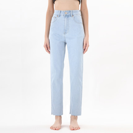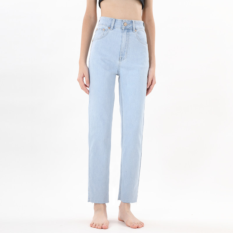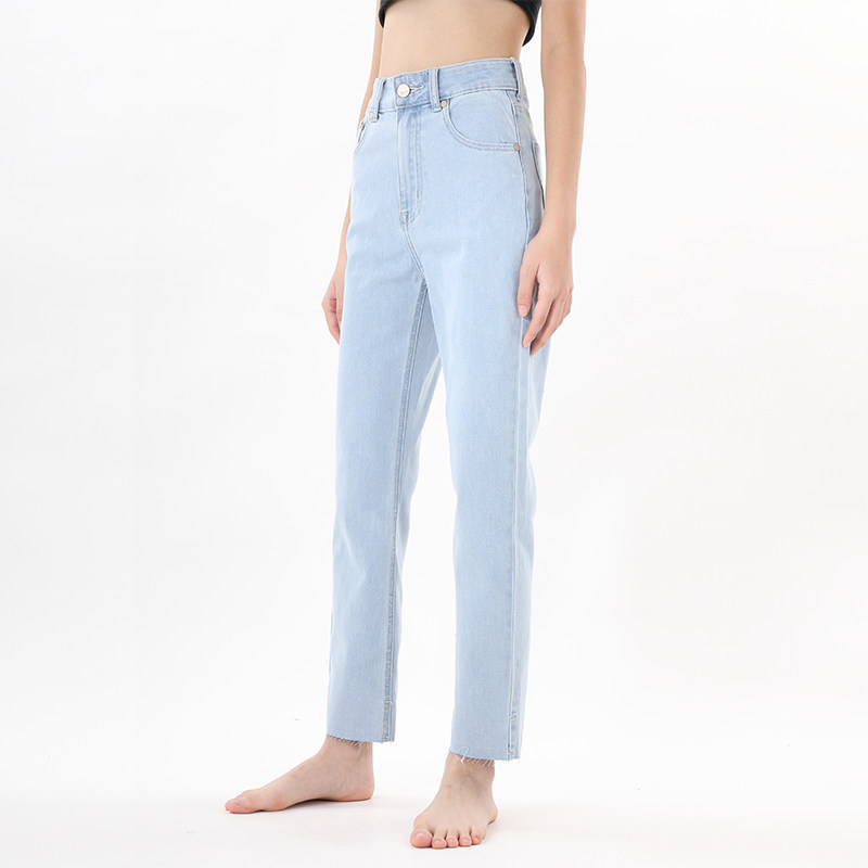 毛边修身日系高腰小直筒牛仔裤女