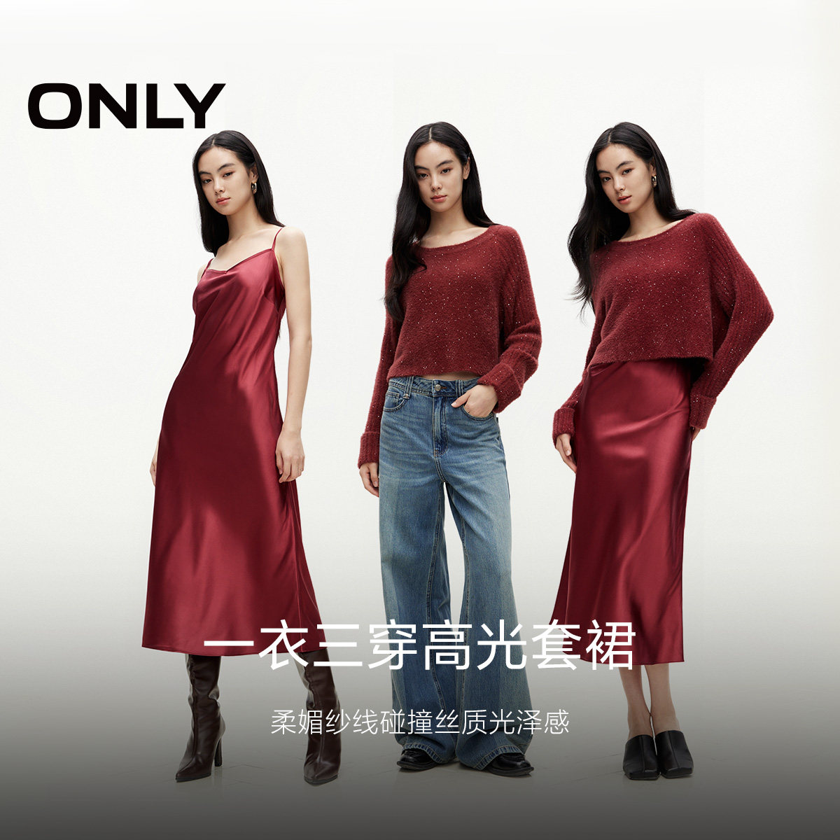 【ONLY奥莱】秋季时尚潮流高级感遮肉套装长款圆领连衣裙女