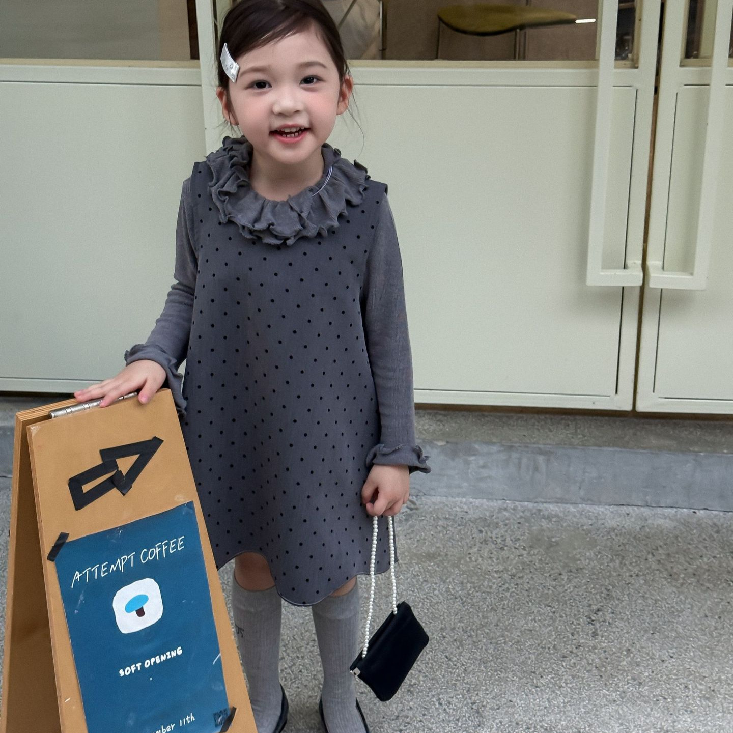 2025秋季新款童装韩版童装女童波点植绒背心裙下摆波浪连衣裙