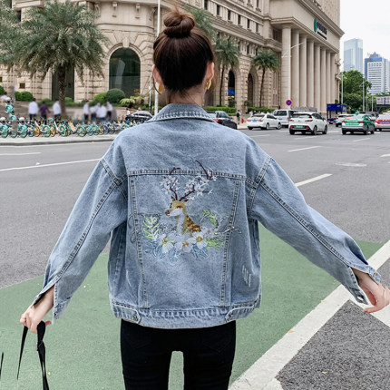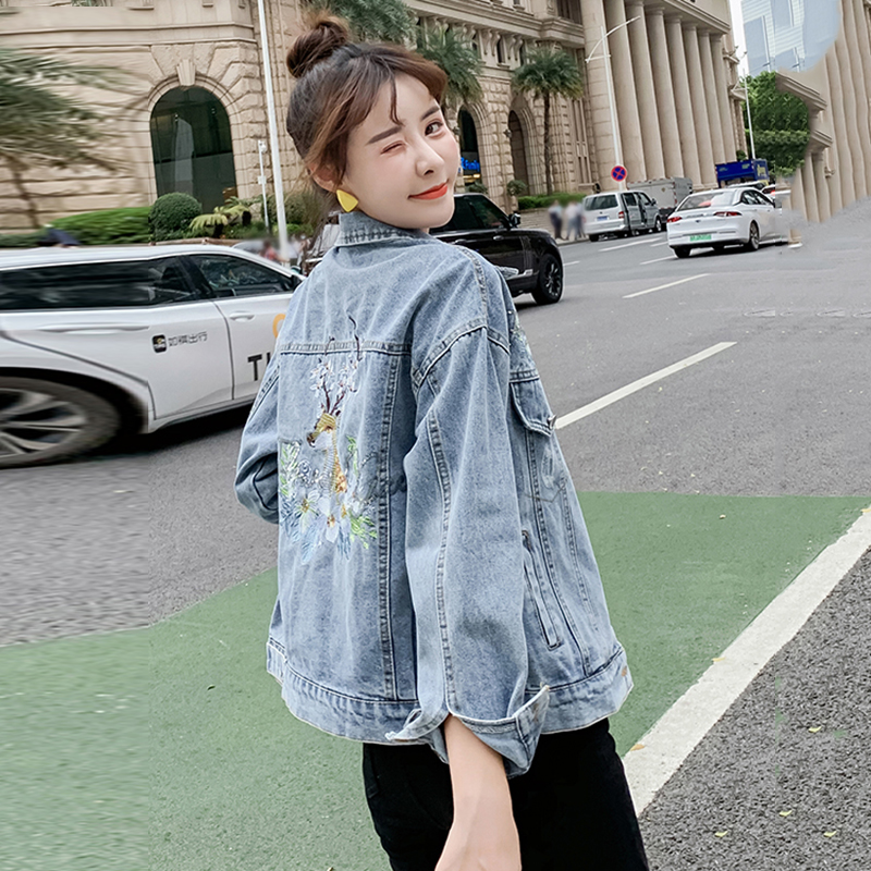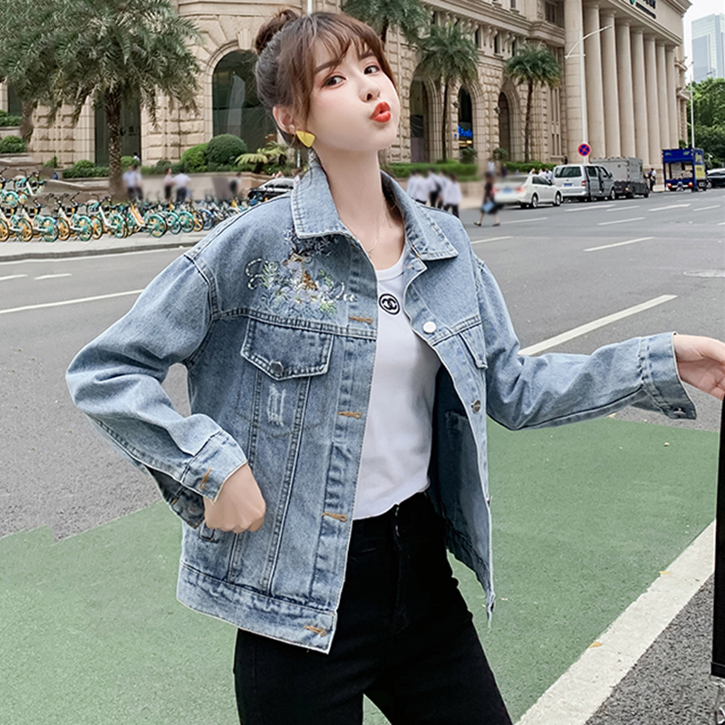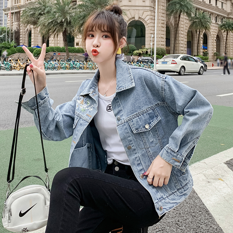 2025春秋季新款初中学生牛仔短外套女装原宿风宽松夹克港味刺绣潮