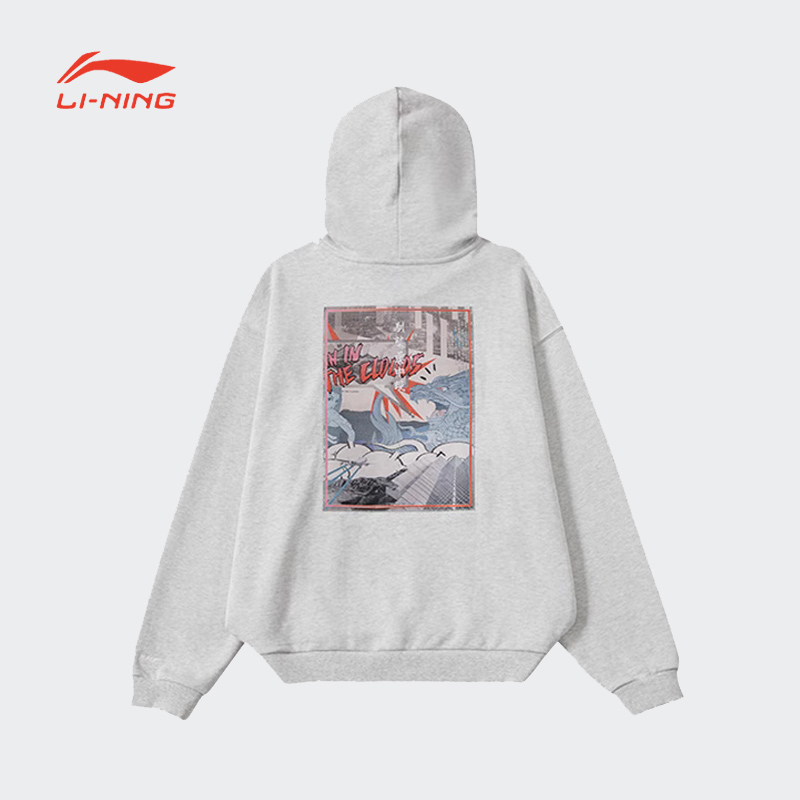 李宁男子宽松套头连帽卫衣潮流百搭运动针织运动服上衣LWDR019