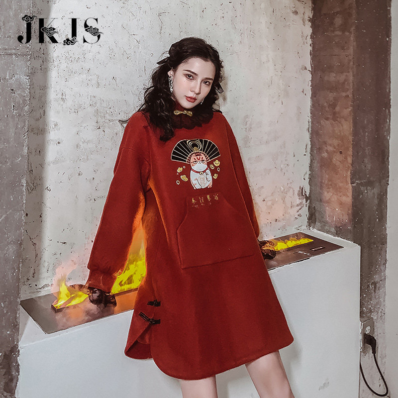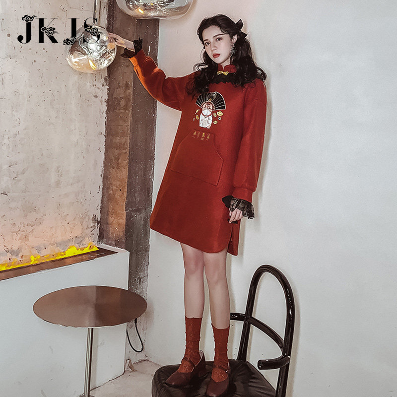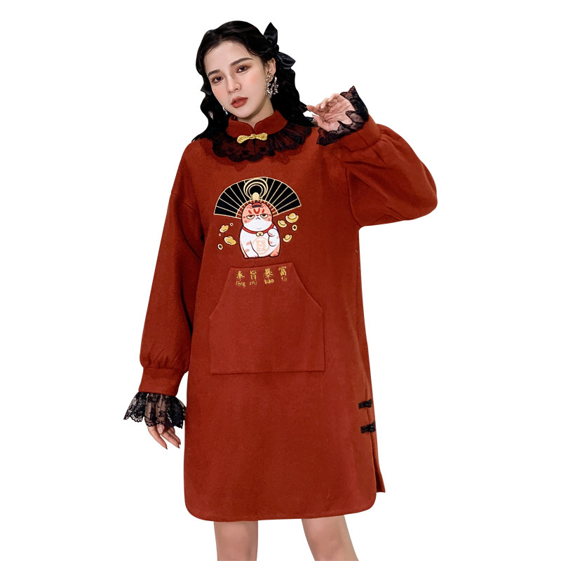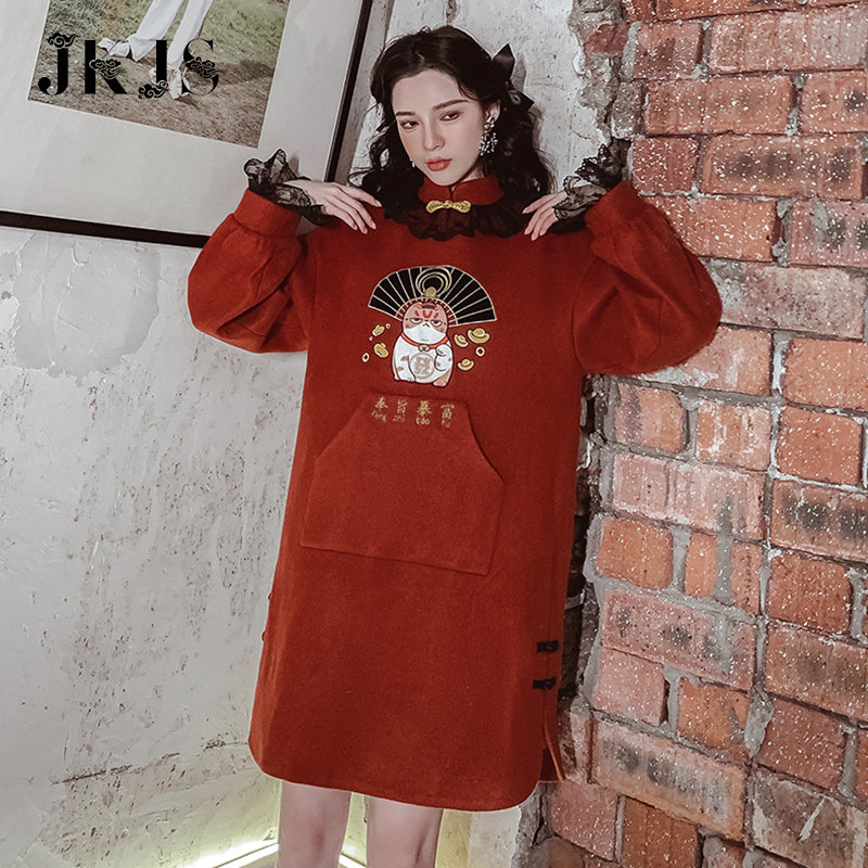 旗袍女冬2022年新款年轻款少女冬款加厚炸街国潮女装中国风连衣裙