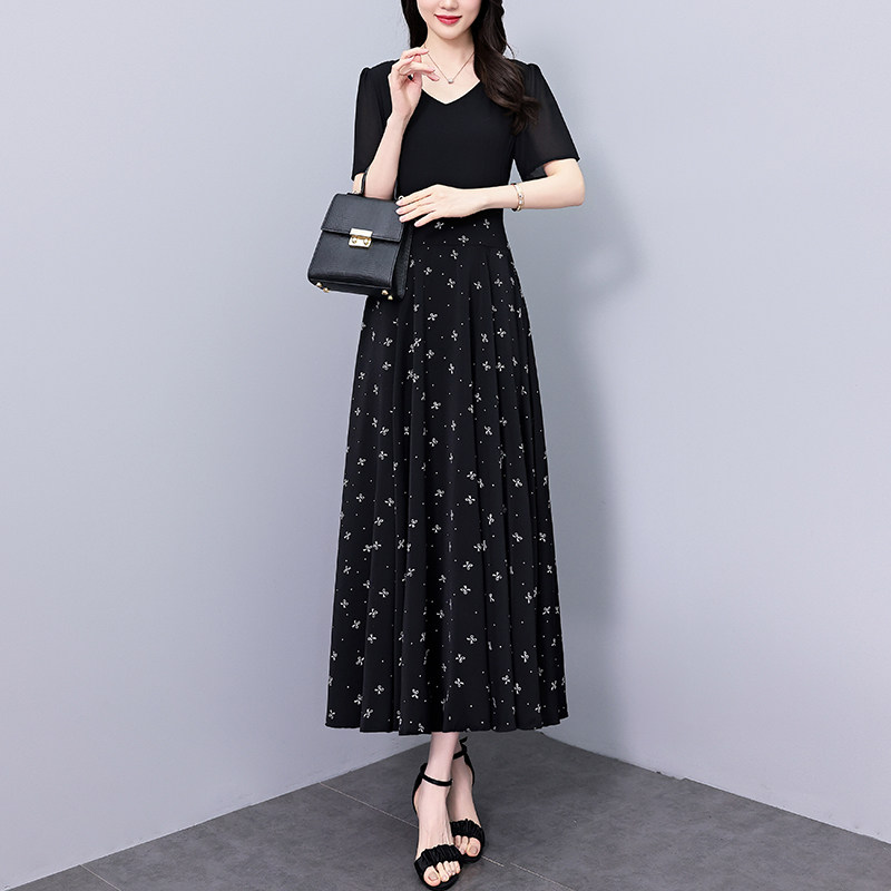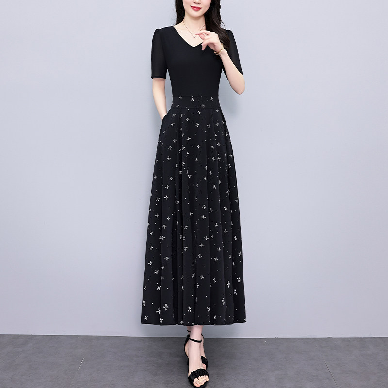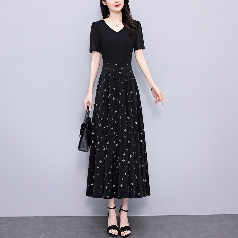 2025夏季新款时尚妈妈气质连衣裙高档洋气减龄修身显瘦雪纺短袖裙