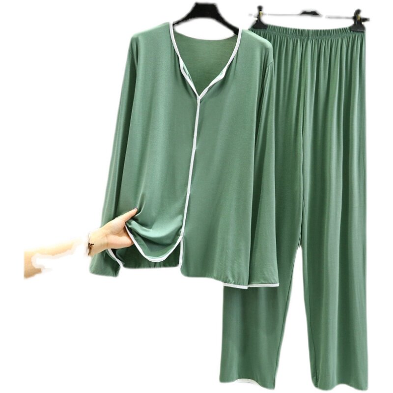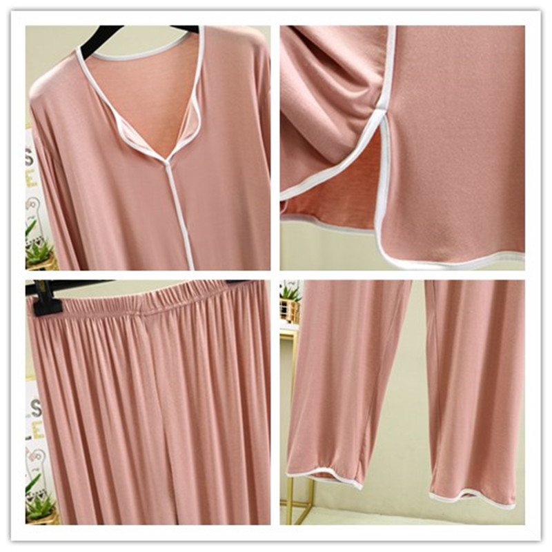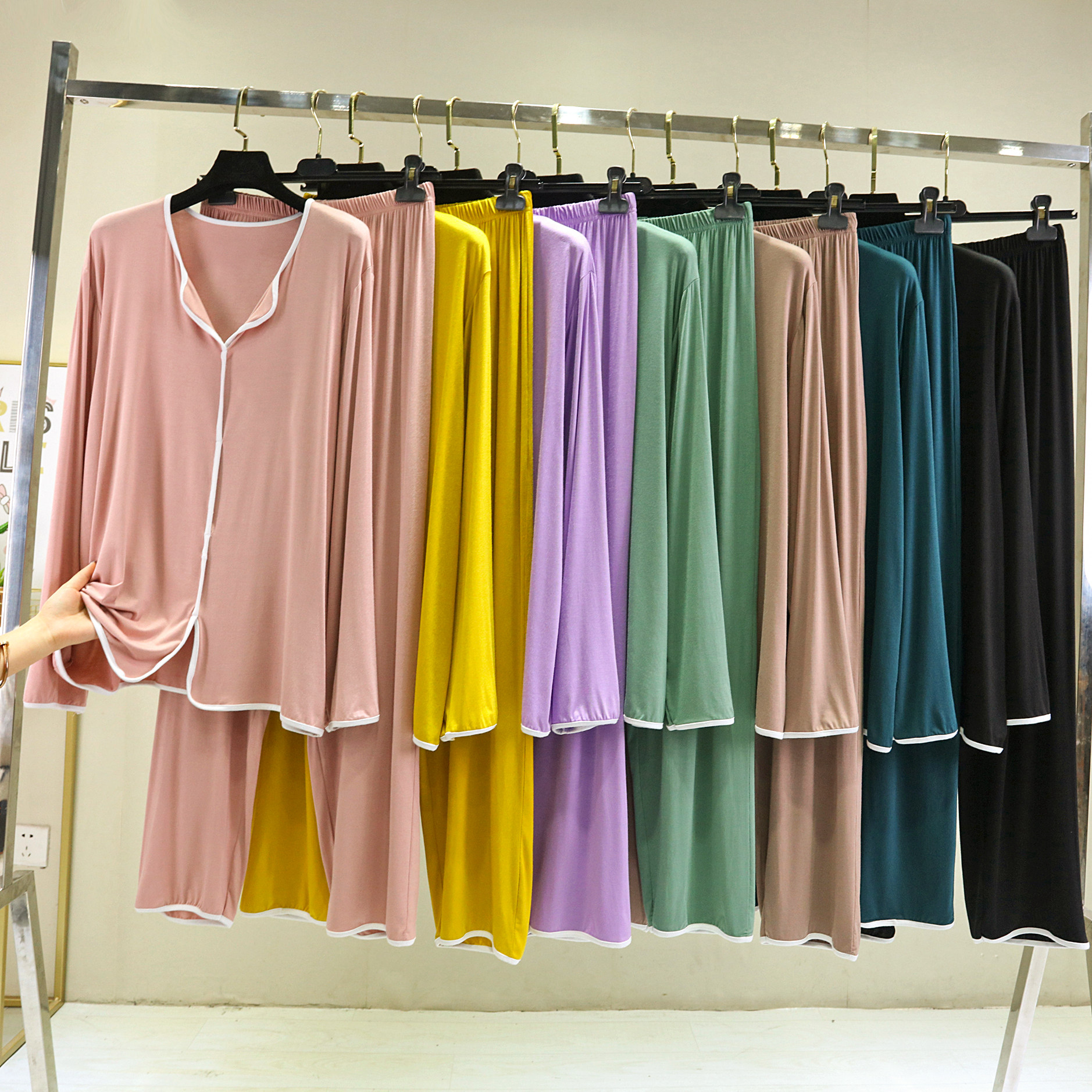 莫代尔春夏长袖长裤拼接居家套装可外穿休闲服睡衣睡裤秋冬家居服