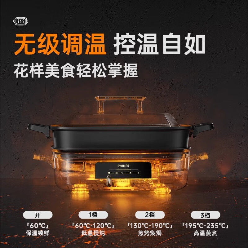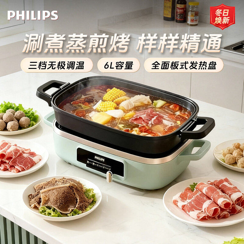 飞利浦家用电火锅HD2250多功能料理锅电热锅分体火锅烤锅正品新款