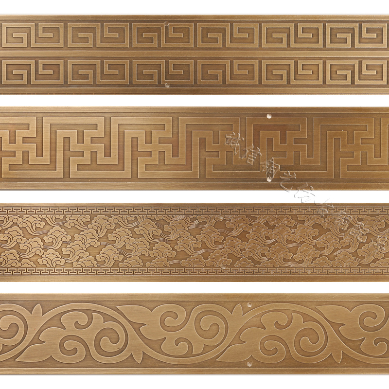 纯铜护角仿古大门压边条背景装饰铜线条中式柱子家具刻花封边包角