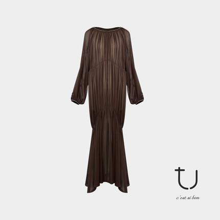 TU女装桑蚕丝钉珠长款连衣裙