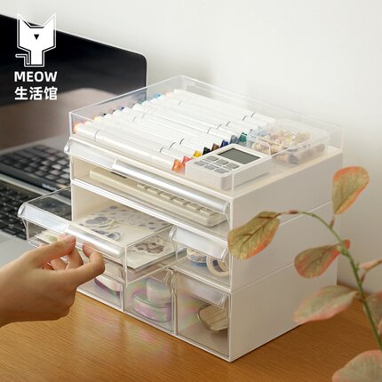 桌面透明文具杂物抽屉式收纳盒