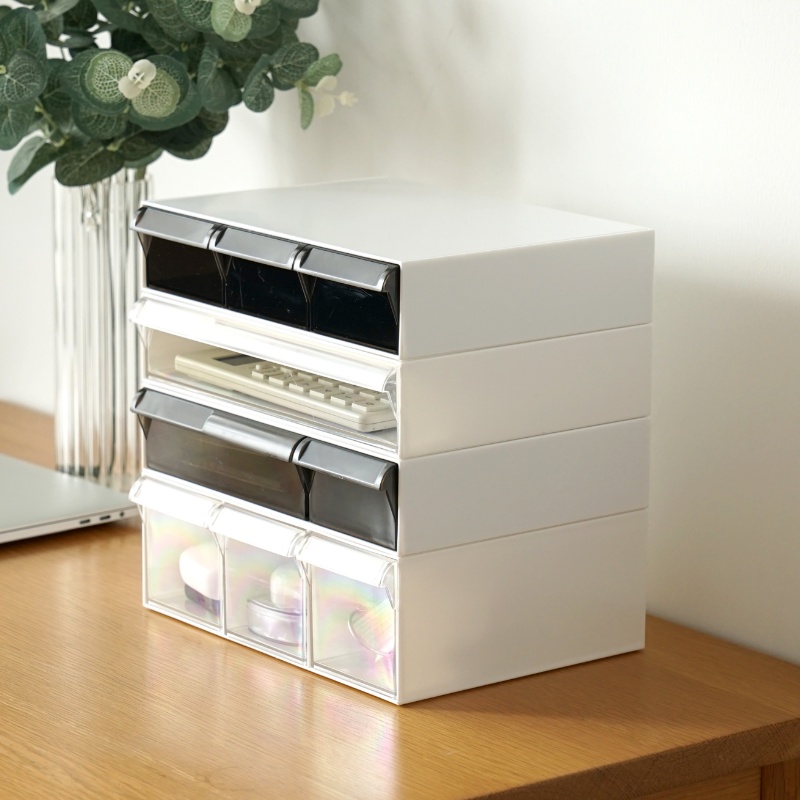 桌面化妆品杂物收纳盒 抽屉式亚克力透明防尘多层文具带盖整理盒