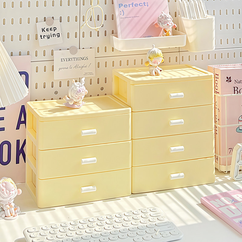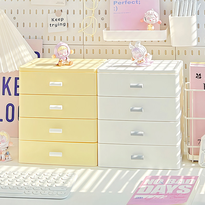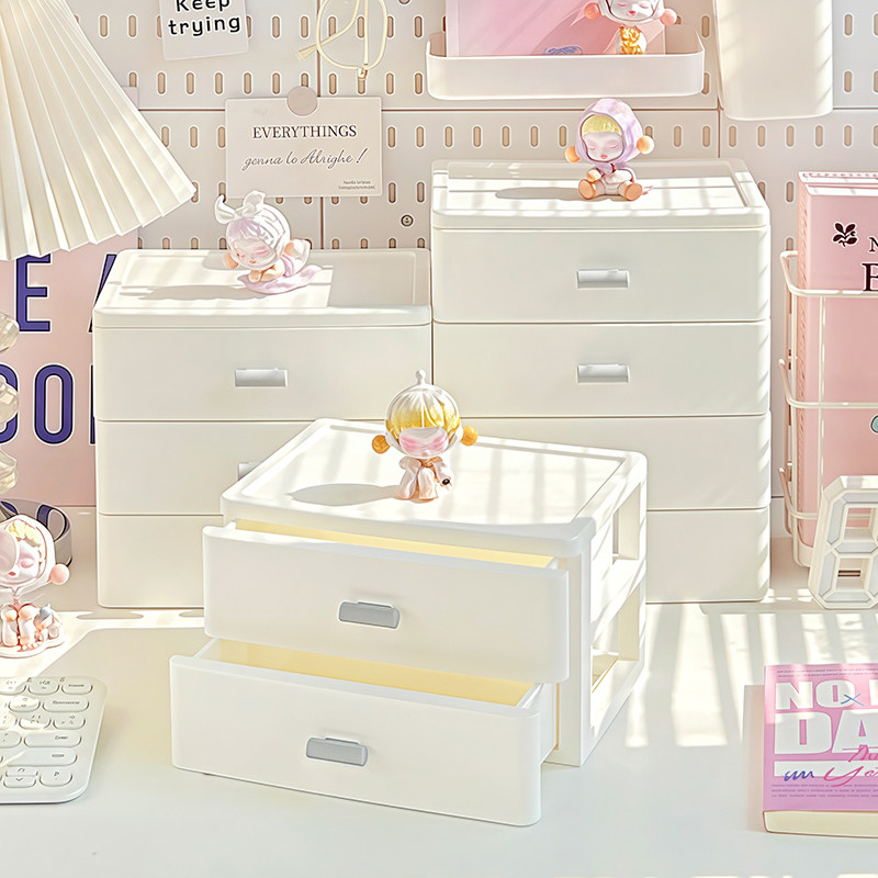 桌面收纳盒抽屉式学生书桌办公工位文具杂物柜整理盒化妆品置物架