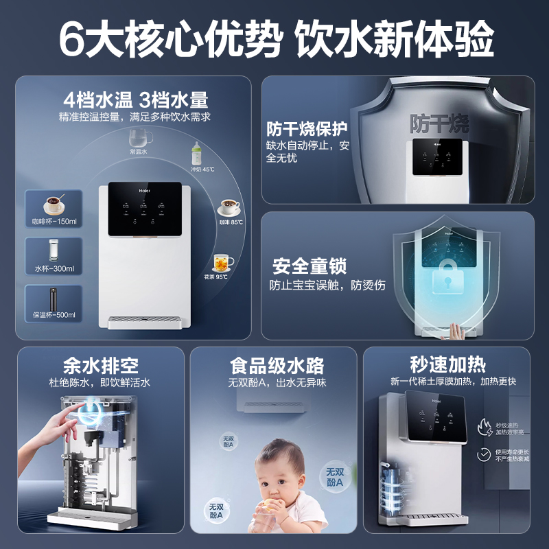 海尔管线机家用壁挂式直饮机净水器一体机即热线管饮水嵌入式