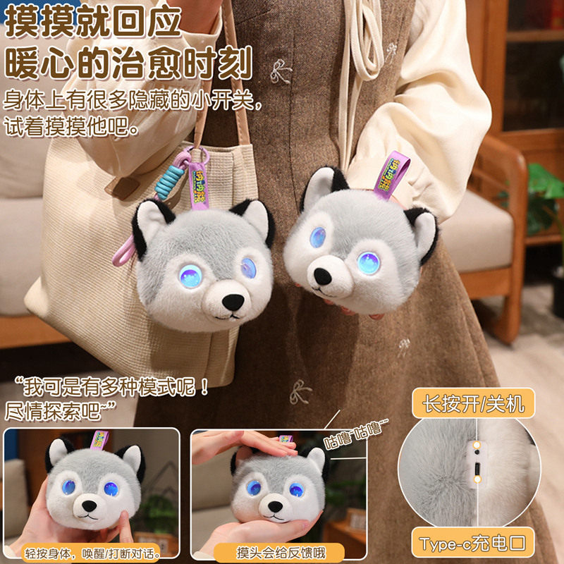 跨境对话AI玩具情感陪伴智能机器人哈士奇情侣熊毛绒玩具儿童玩偶