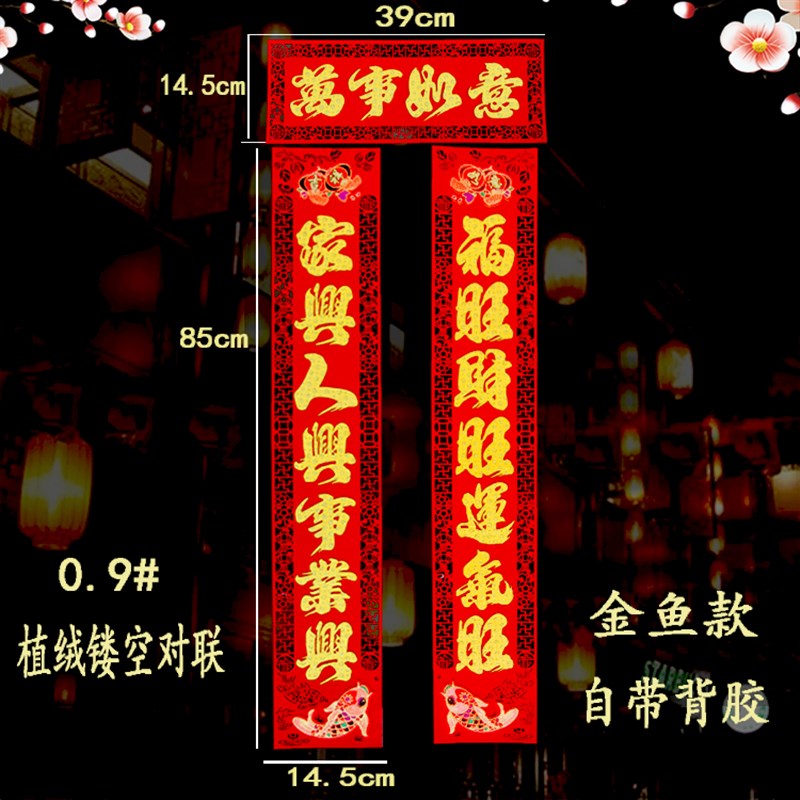 2022虎年新年对联高档创意家用大门春联过年绒布春节装饰福字门贴