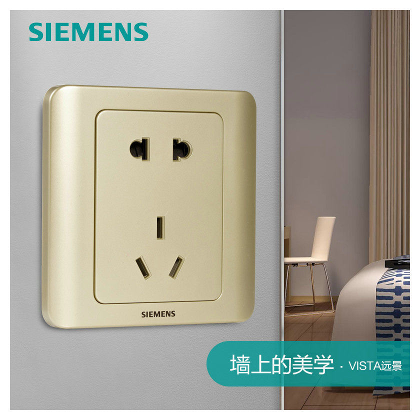 西门子开关插座远景香槟金面板二三插五孔电源金色空调siemens