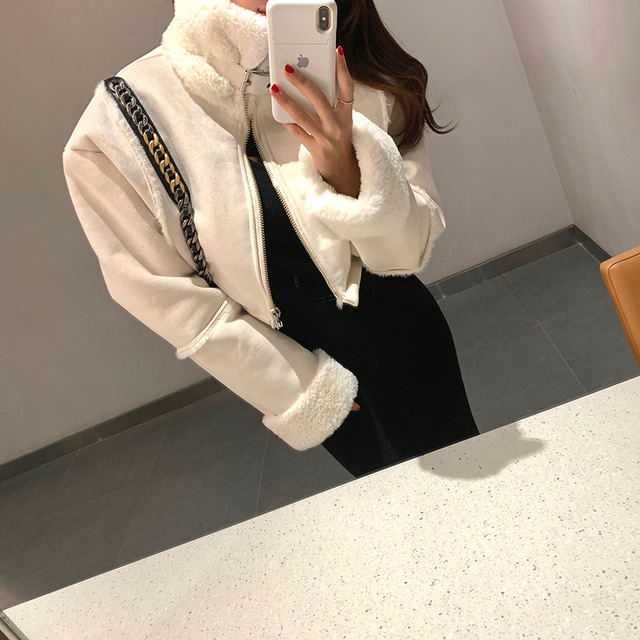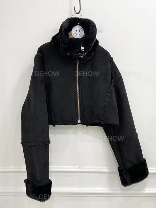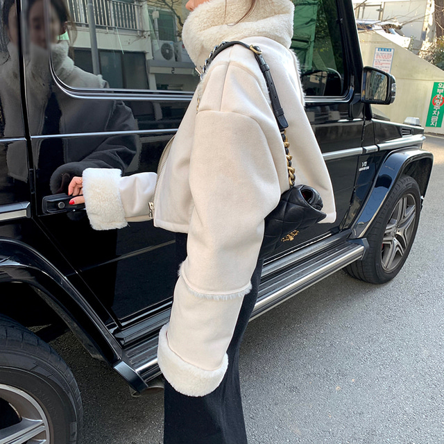 韩国东大门冬季网红时尚立领复古短款羊羔毛鹿皮绒机车夹克外套女