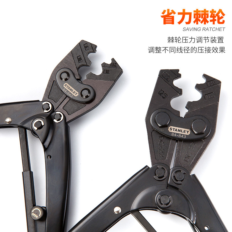史丹利强力端子压接钳棘轮冷压裸端子压线钳子84-840/841/842/843