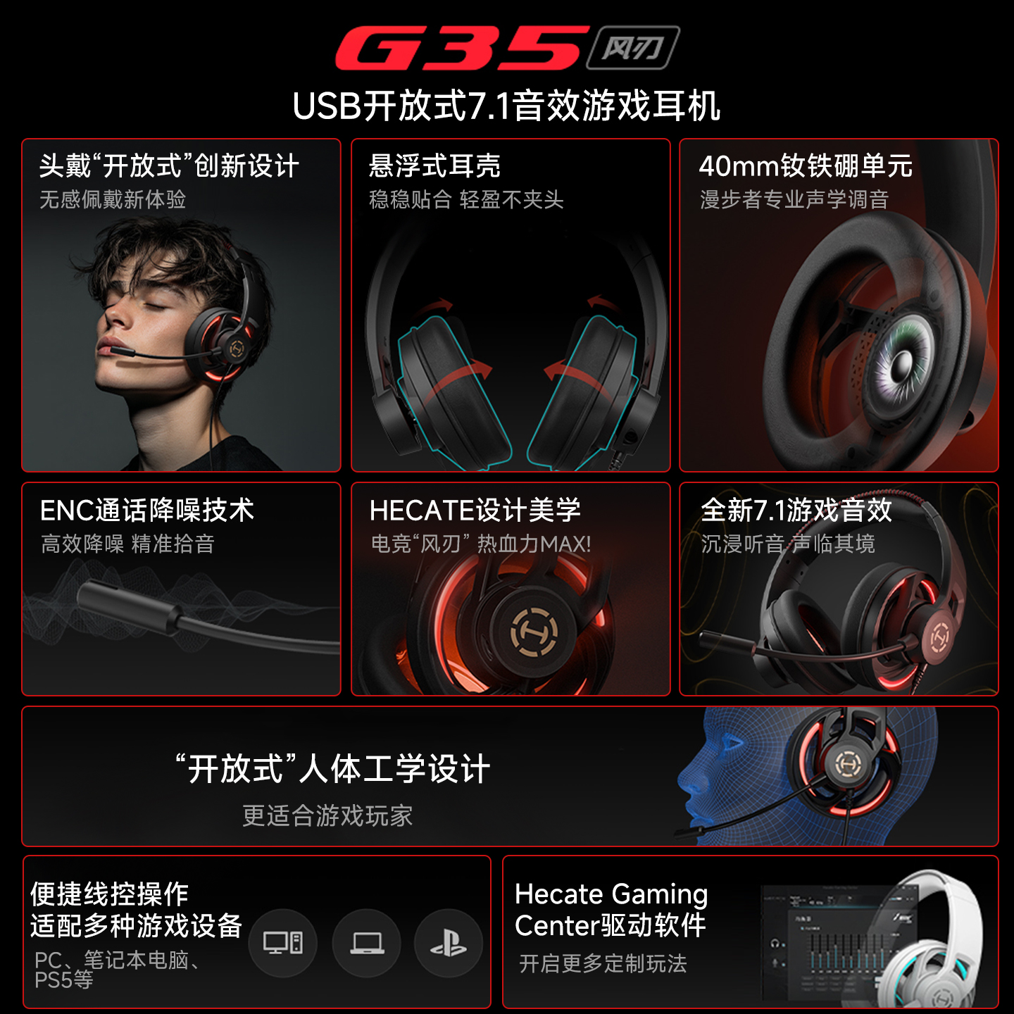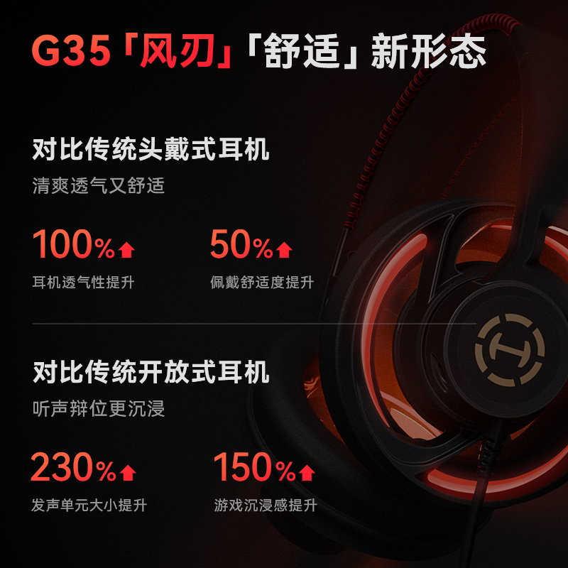 HECATE漫步者G35风刃开放式头戴式耳机游戏电竞电脑有线吃鸡加长