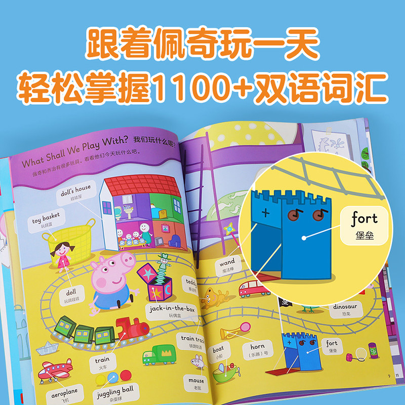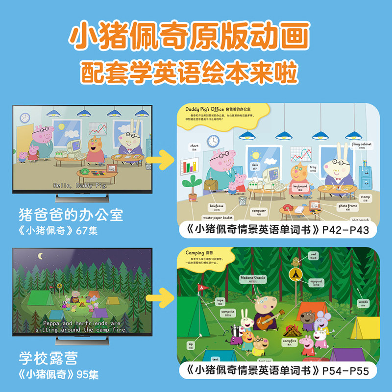 乐乐趣 小猪佩奇情景英语单词书幼儿早教点读笔绘本3-6岁儿童英语启蒙绘本幼小衔接 幼儿园中班大班宝宝双语启蒙图画书贴合新课标